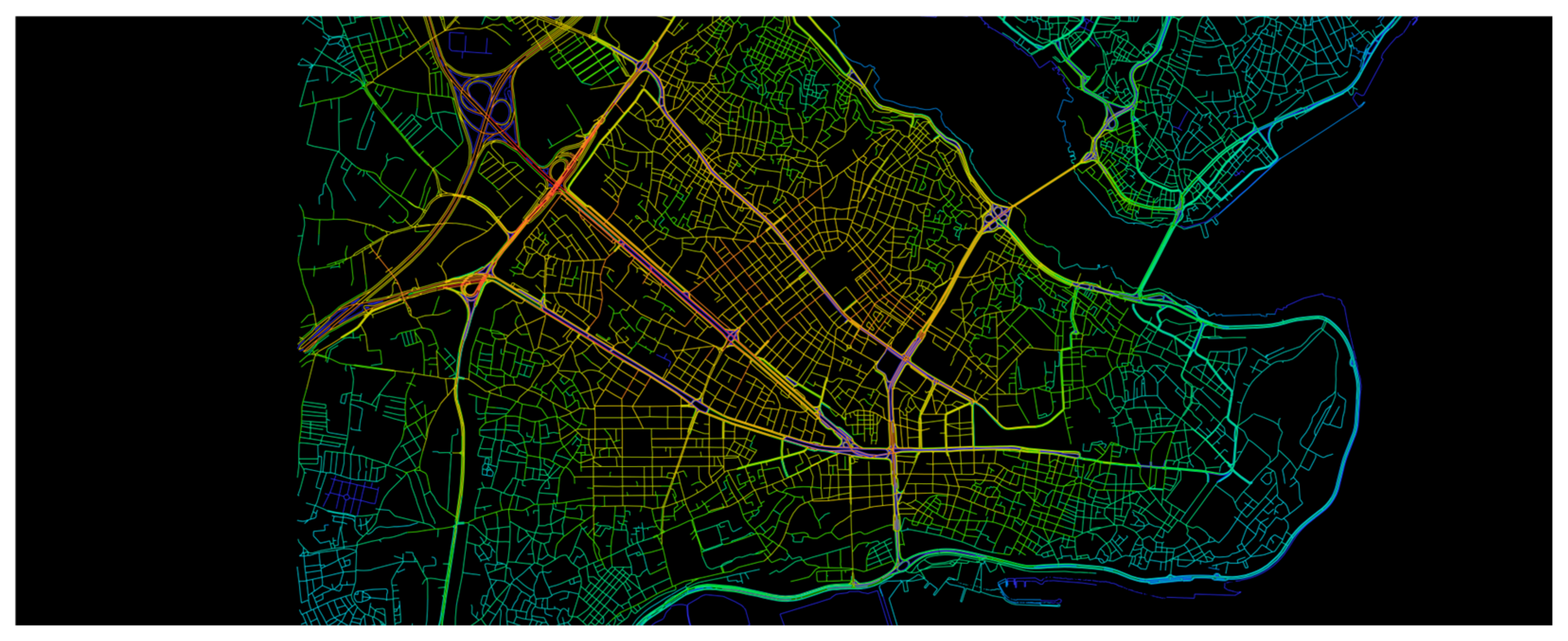 Figure 8 demonstrates the configurational features of the routes of Istanbul’s historic city center. It reveals the degree of configurational connection (red–blue color codes) and the types of routes at different levels of scale. As expected, the main arteries and sections leading to the urban core of the historic city center form an integrated strategic route with the highest configurational degree. This core is connected to the lateral routes leading from the end to the center and it falls between the center and the lateral routes of the local settlements. The configuration of the local routes also revealed both the direction of development and the density of the city.
