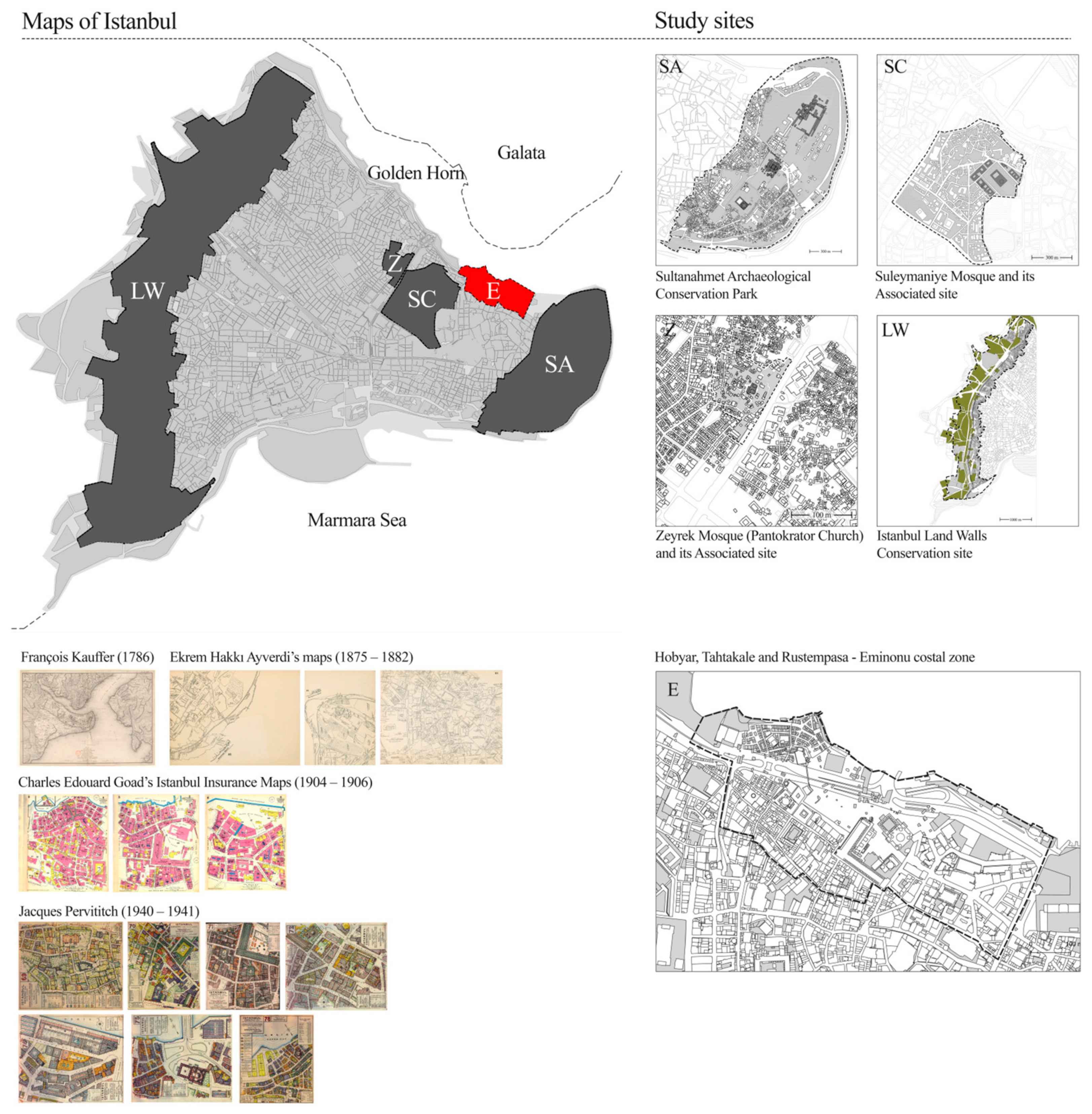 The methodology for this study structured for the Istanbul Historical Peninsula, which contains four World Heritage sites and an urban conservation zone, as their locations are shown in