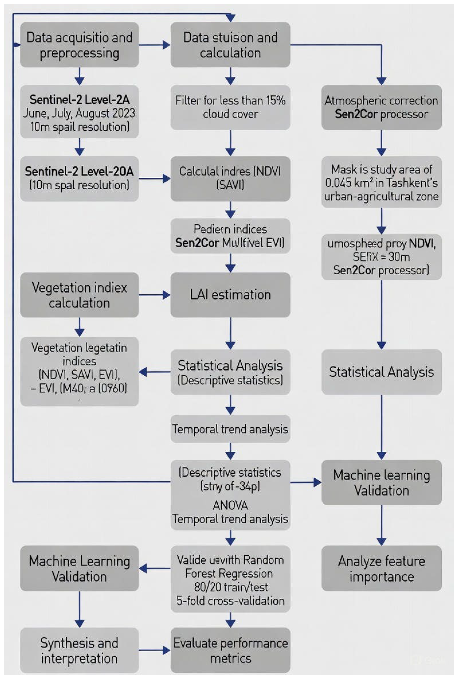 APA StyleMamadaliev, B., Kranjčić, N., Khamidjonov, S., & Teshaev, N. (2026). A Machine Learning-Validated Comparison of LAI Estimation Methods for Urban–Agricultural Vegetation Using Multi-Temporal Sentinel-2 Imagery in Tashkent, Uzbekistan. Land, 15(2), 232. https://doi.org/10.3390/land15020232