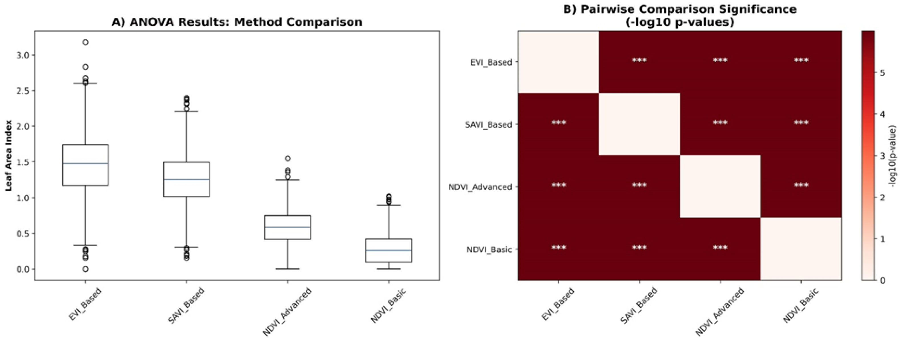 | NDVI-Advanced Method | A logarithmic transformation based on radiative transfer theory, more sensitive at higher LAI values [17] | |