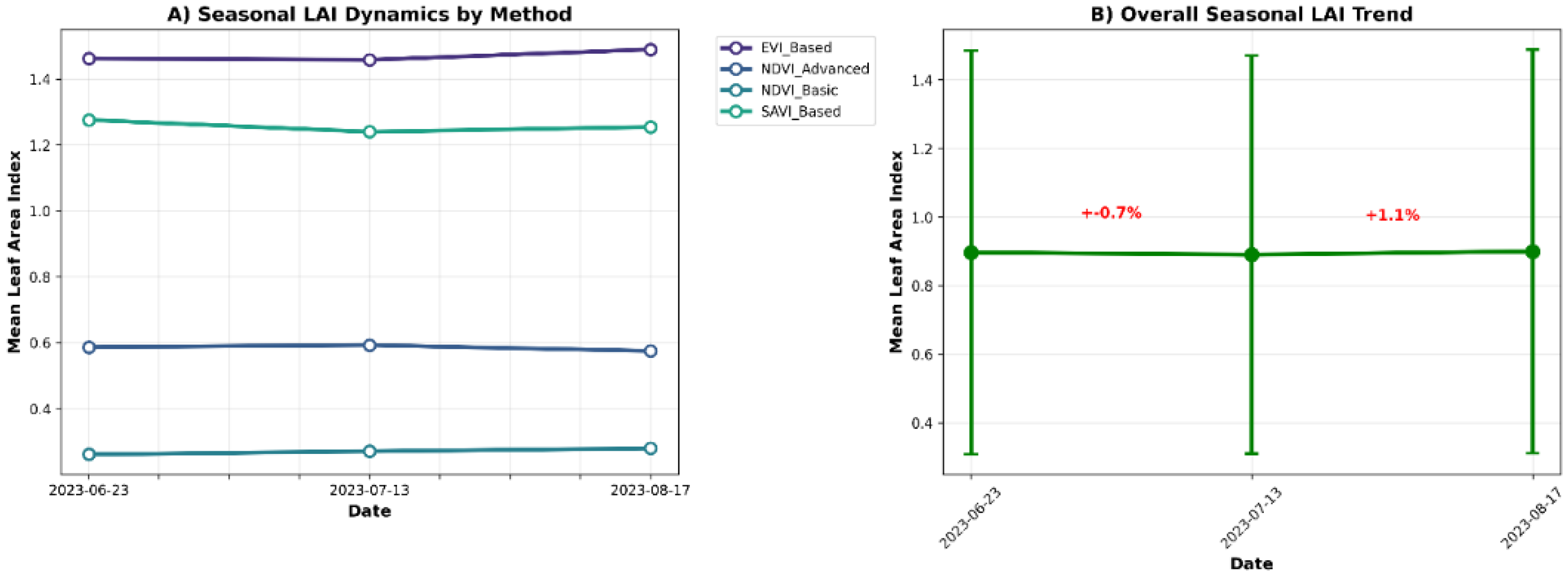 3.3. Temporal LAI Dynamics Across the Growing Season