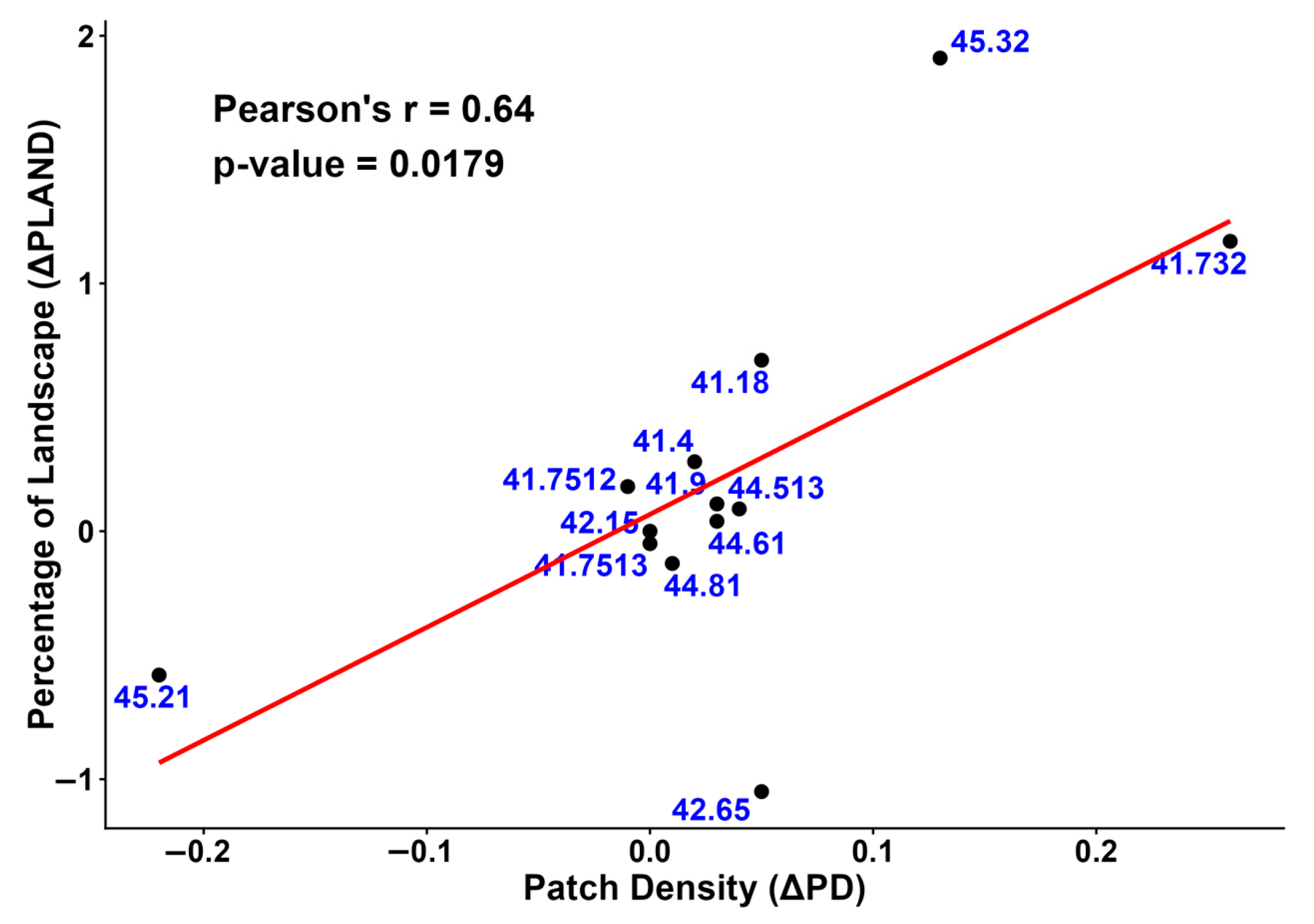 | Patch Density (PD) | Number of patch per 100 hectares | PD > 0 | Number of patch types in 100 hectares. |