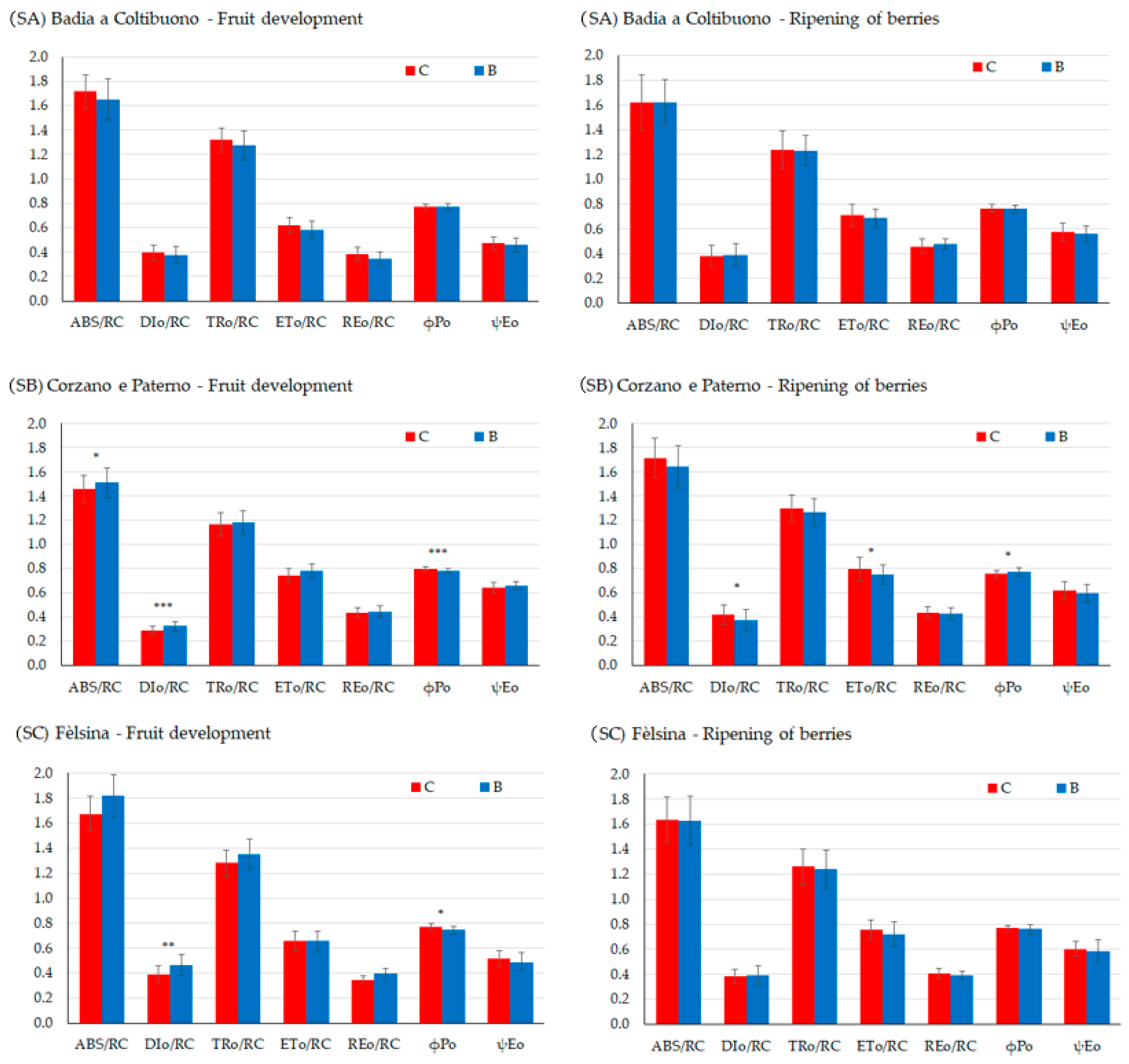 - ABS/RC = light energy absorption (ABS) per reaction center (RC);