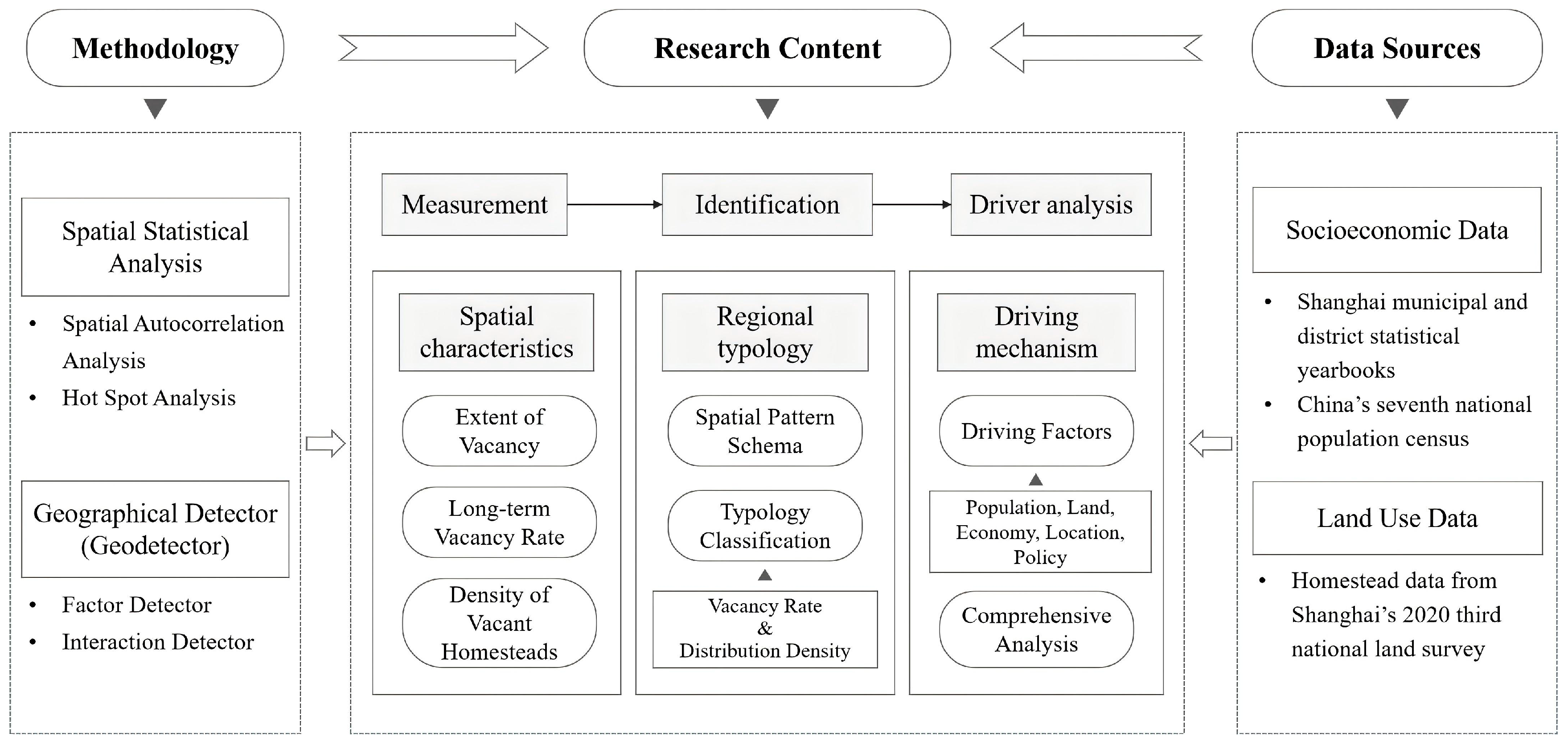 - Li, K.; Geng, H.; Yue, L.; Li, K.; Huang, L. Spatial Differentiation Characteristics and Driving Mechanism of Rural Settlements Transformation in the Metropolis: A Case Study of Pudong District, Shanghai. Front. Environ. Sci. 2021, 9, 755207. [Google Scholar] [CrossRef]