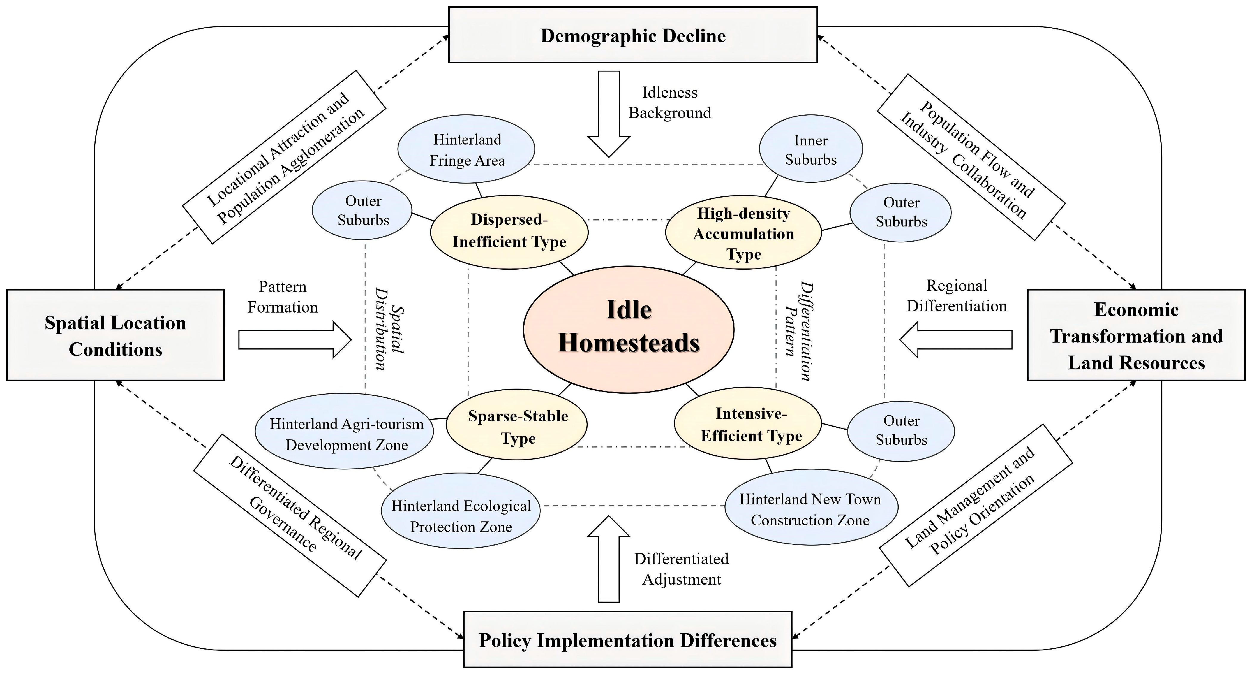 - Chen, Y.; Yan, X.; Zhang, J.; Chen, C.; Wang, Y.; Fan, J. Determinants and Governance of Unused Rural Residential Bases in the Context of Rural Revitalisation in China. Sci. Rep. 2025, 15, 33850. [Google Scholar] [CrossRef] [PubMed]