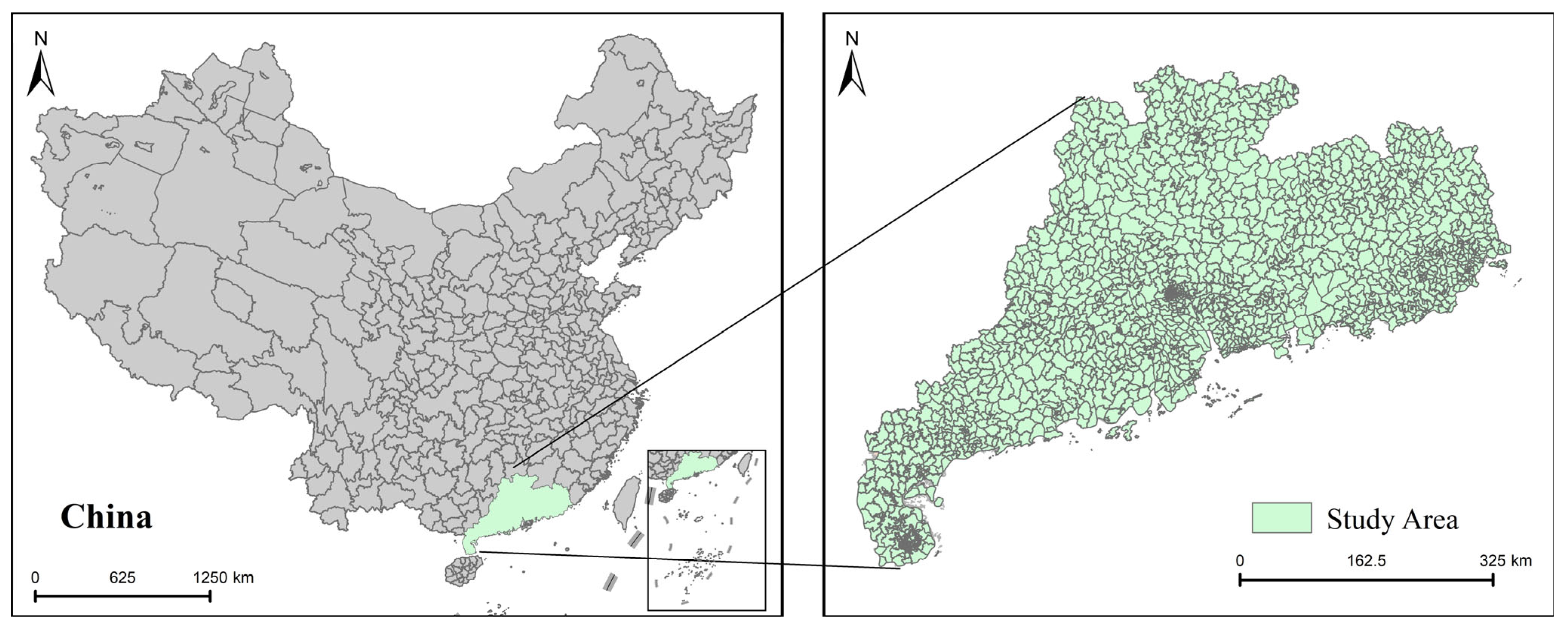 Based on land use data, NTL data, and POI data from 2013 to 2025, this study comprehensively applies spatial analysis and deep learning methods to systematically study the spatiotemporal evolution characteristics and mutual relationships of urban–rural integrated development and common prosperity levels. This study characterizes the actual results of urban–rural integration and common prosperity from multiple dimensions such as urban–rural spatial form evolution, economic activity intensity, and public service diversity, and identifies the coupling types and evolution processes of the two in different regions and different periods through spatial clustering. This study finds that urban–rural integration significantly promotes urban spatial expansion and the improvement in overall economic activity levels during the study period, but its development results show obvious spatial imbalance. The common prosperity level generally improves, but it highly concentrates in the Pearl River Delta and city–county center areas. Further analysis finds that the promotion effect of urban–rural integrated development on common prosperity possesses significant characteristics of regional heterogeneity, stages, and time lags. It manifests as synergistic improvement in core city areas, while insufficient conversion efficiency and structural differentiation phenomena exist in some non-core areas. The above findings indicate that urban–rural integration does not necessarily and immediately translate into an improvement in the common prosperity level, and factors such as regional development foundation, industrial structure, and public service supply capability profoundly constrain its effect.
