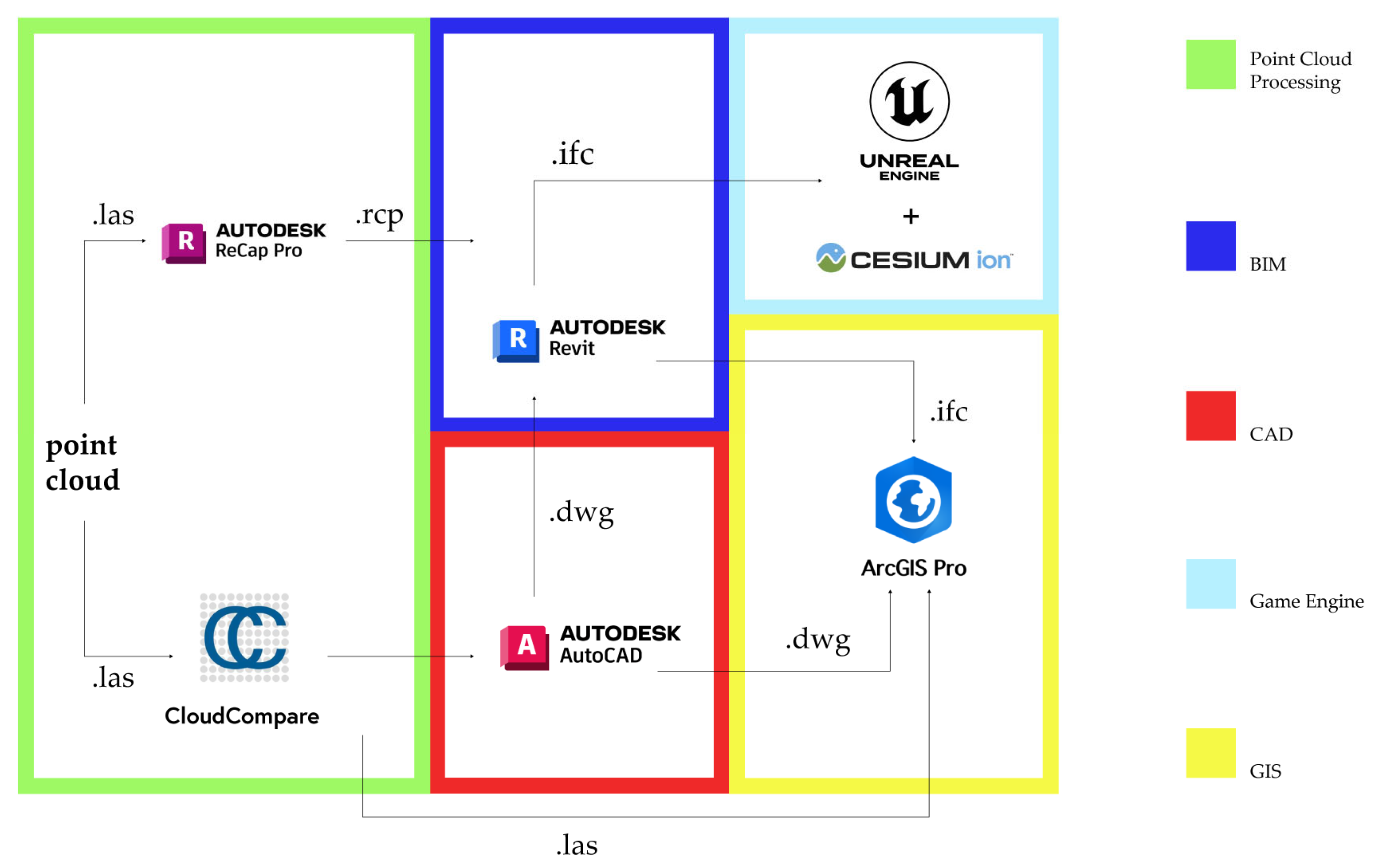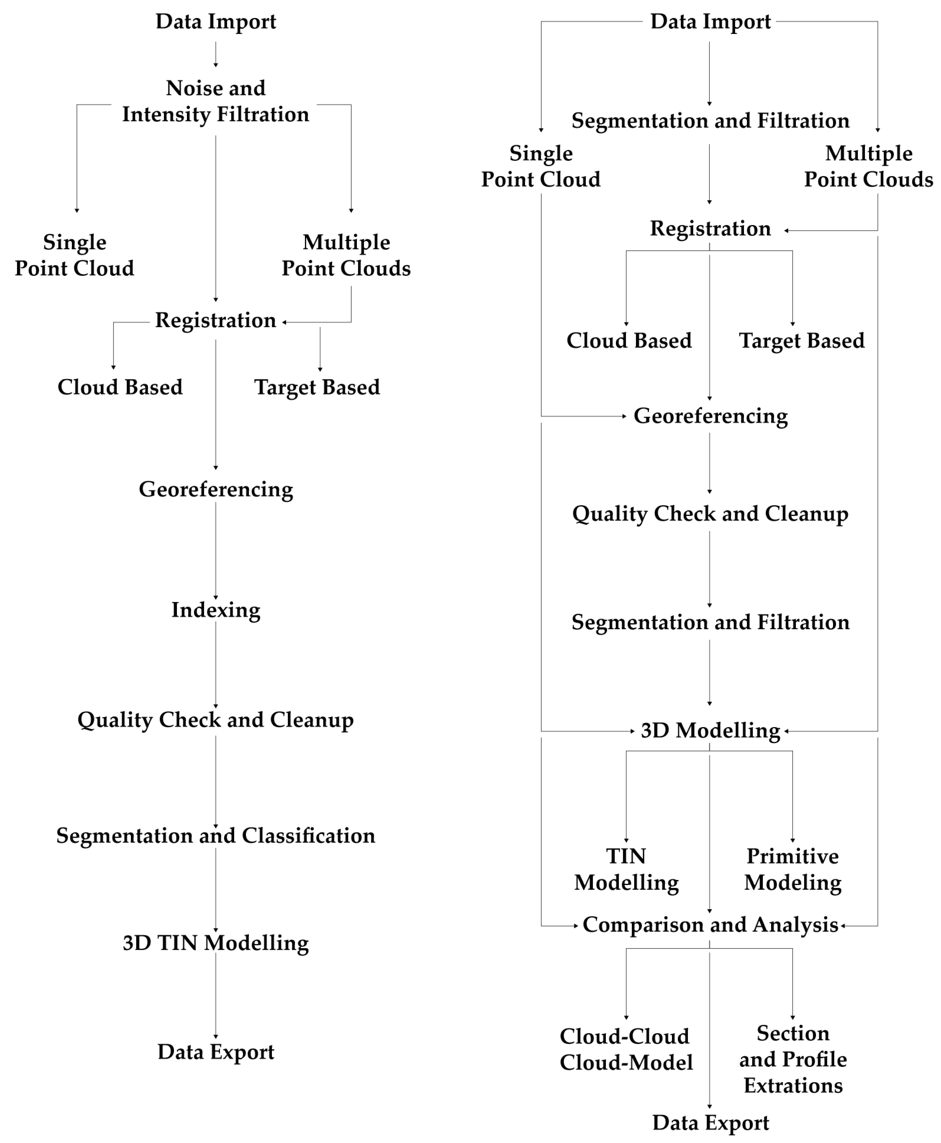 Figure 4. Comparative workflow between Autodesk ReCap and CloudCompare (adapted after [35]).