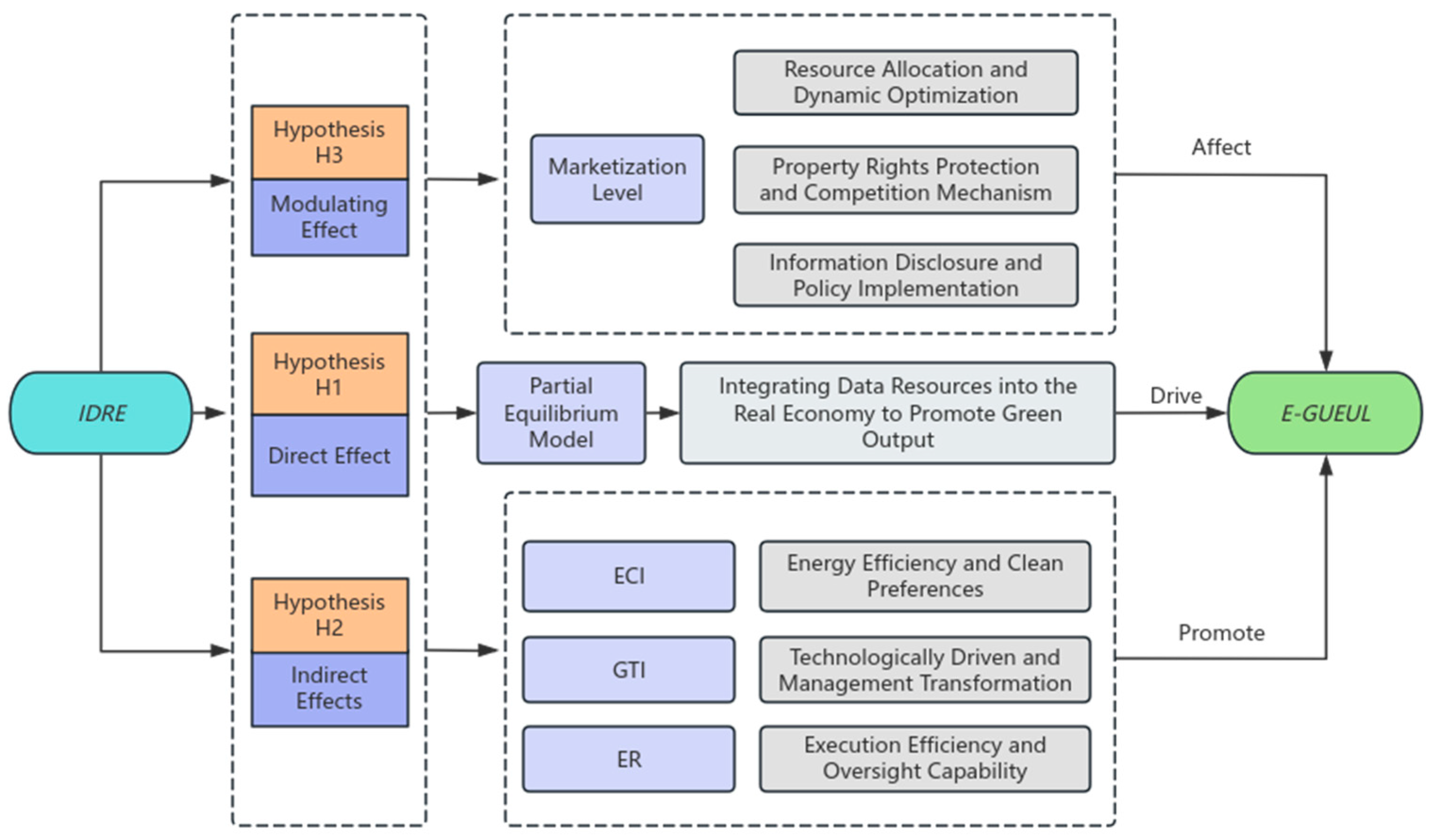 16]. Second, the study develops a unified analytical framework that jointly examines IDRE and E-GUEUL, providing a systematic discussion of their underlying logic and operating mechanisms [