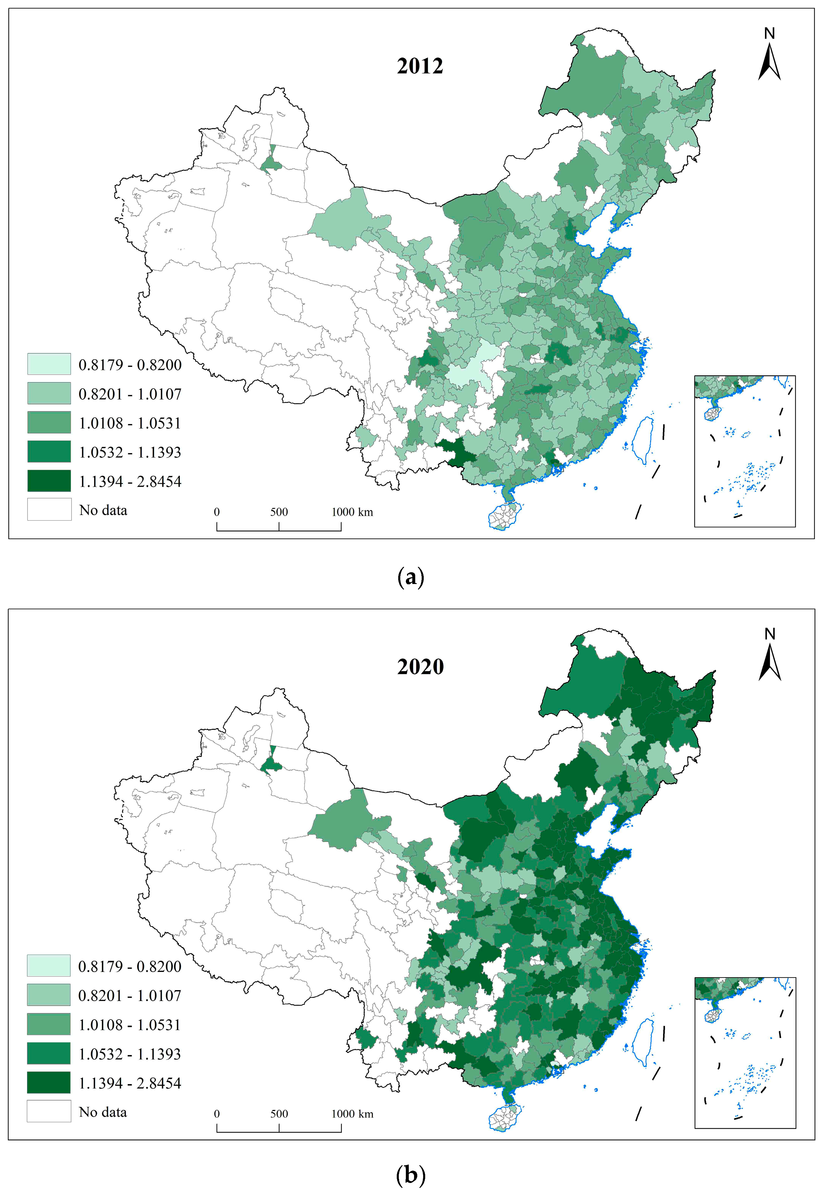 The marginal contributions of this study are threefold. First, building on prior research, the measurement of IDRE is implemented at the prefecture-level city scale. This focus helps move beyond the limitations inherent in province-level measurement and facilitates a more comprehensive assessment of the current state of IDRE across Chinese cities [