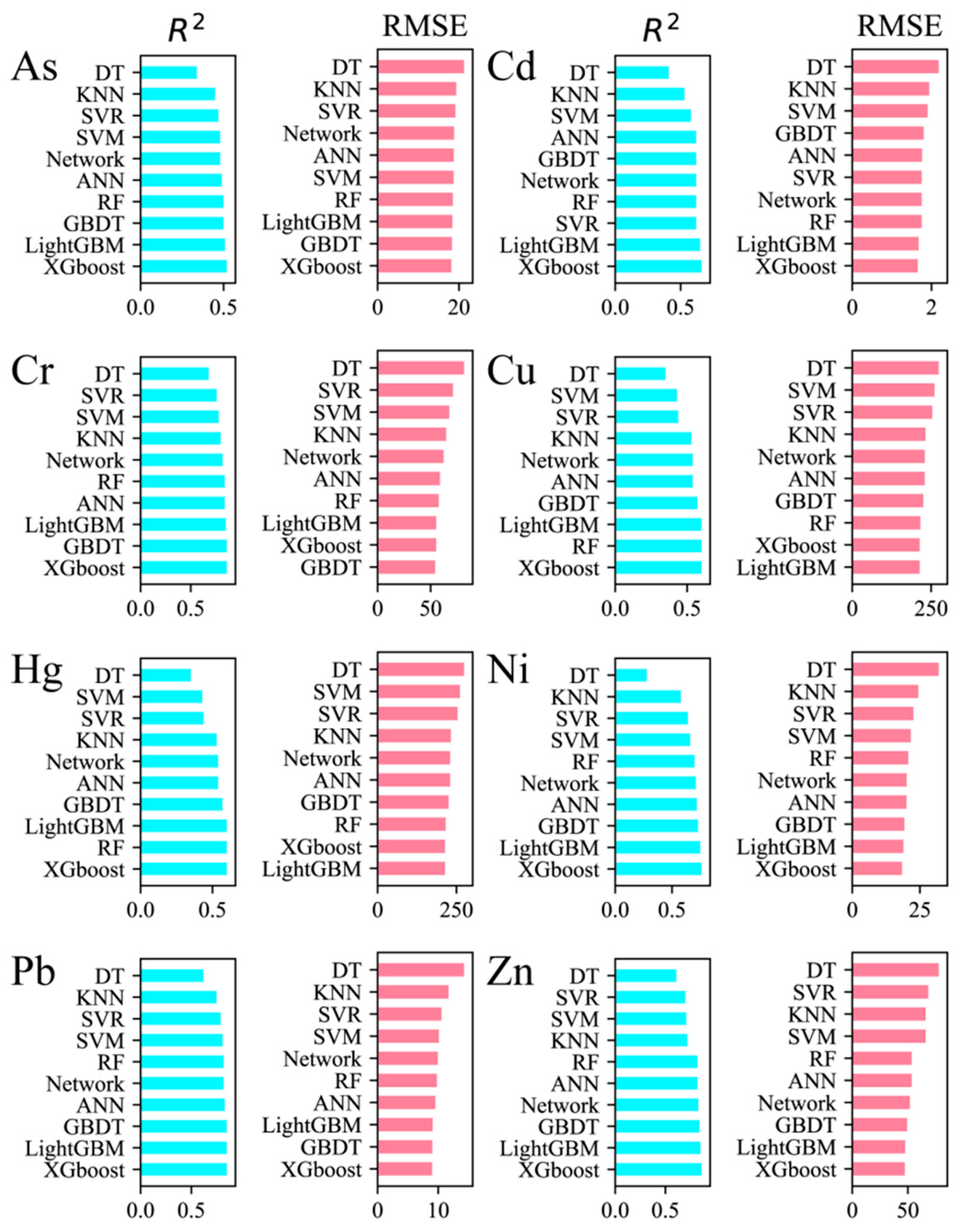 - Shi, T.; Zhang, J.; Shen, W.; Wang, J.; Li, X. Machine learning can identify the sources of heavy metals in agricultural soil: A case study in northern Guangdong Province, China. Ecotoxicol. Environ. Saf. 2022, 245, 114107. [Google Scholar] [CrossRef] [PubMed]