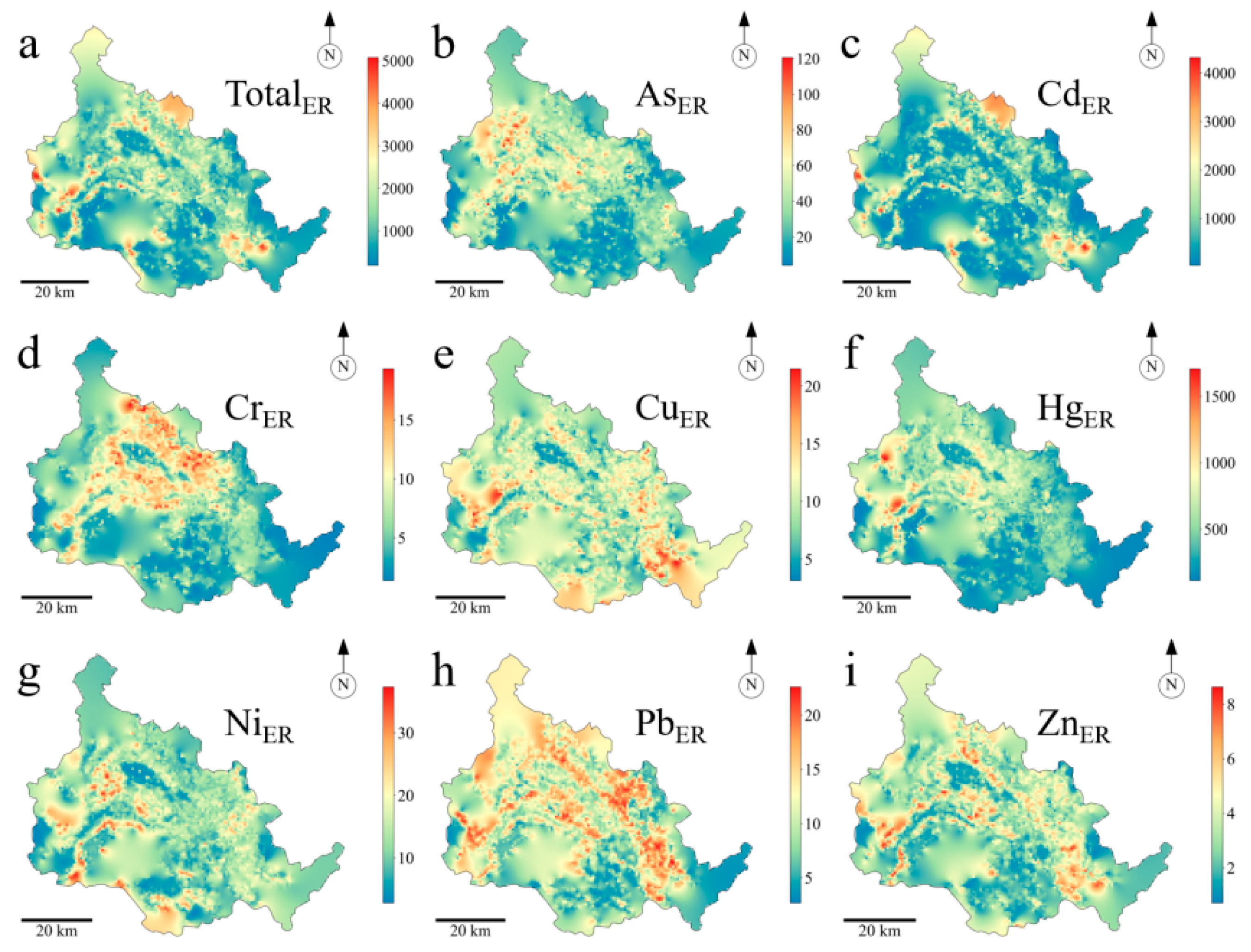 2.5. Potential Ecological Risk Models