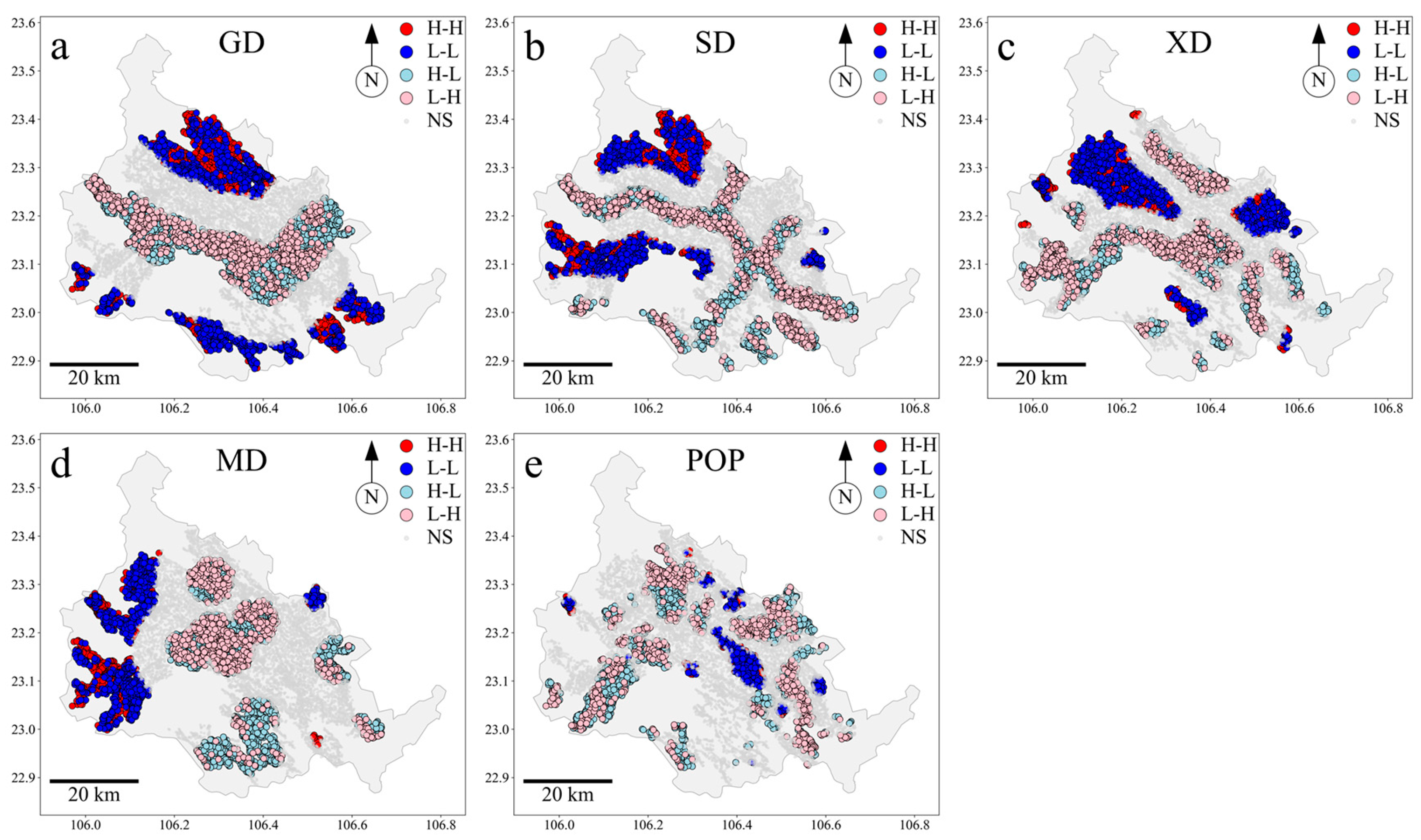 2.6. Spatial Bivariate Correlation Analysis