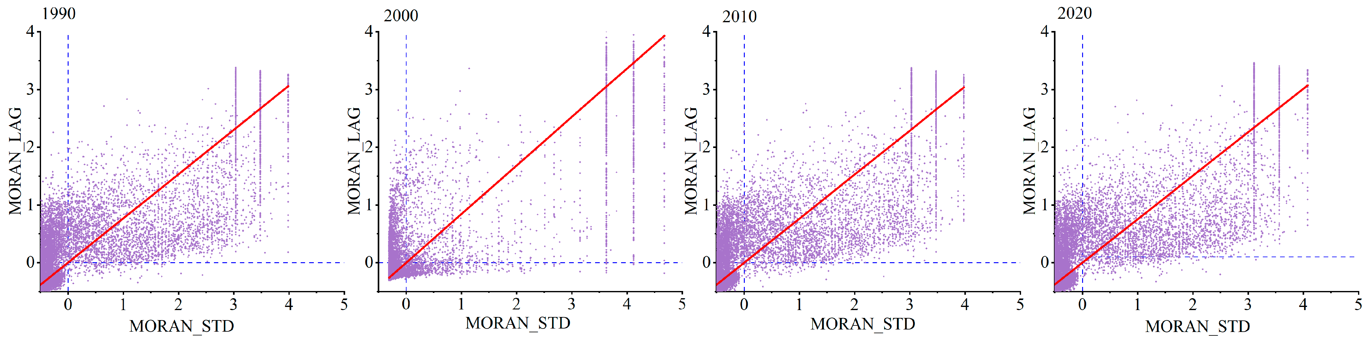 4.1. Analysis of Spatiotemporal Drivers of ESV and LER