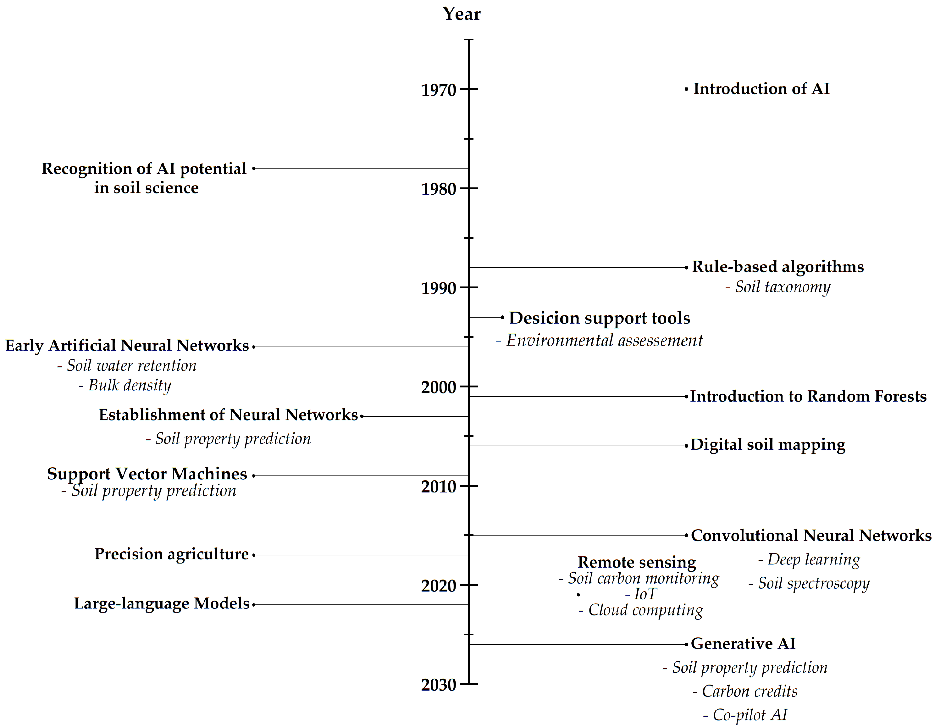 - Wadoux, A.M.J.-C. Artificial Intelligence in Soil Science. Eur. J. Soil Sci. 2025, 76, e70080. [Google Scholar] [CrossRef]