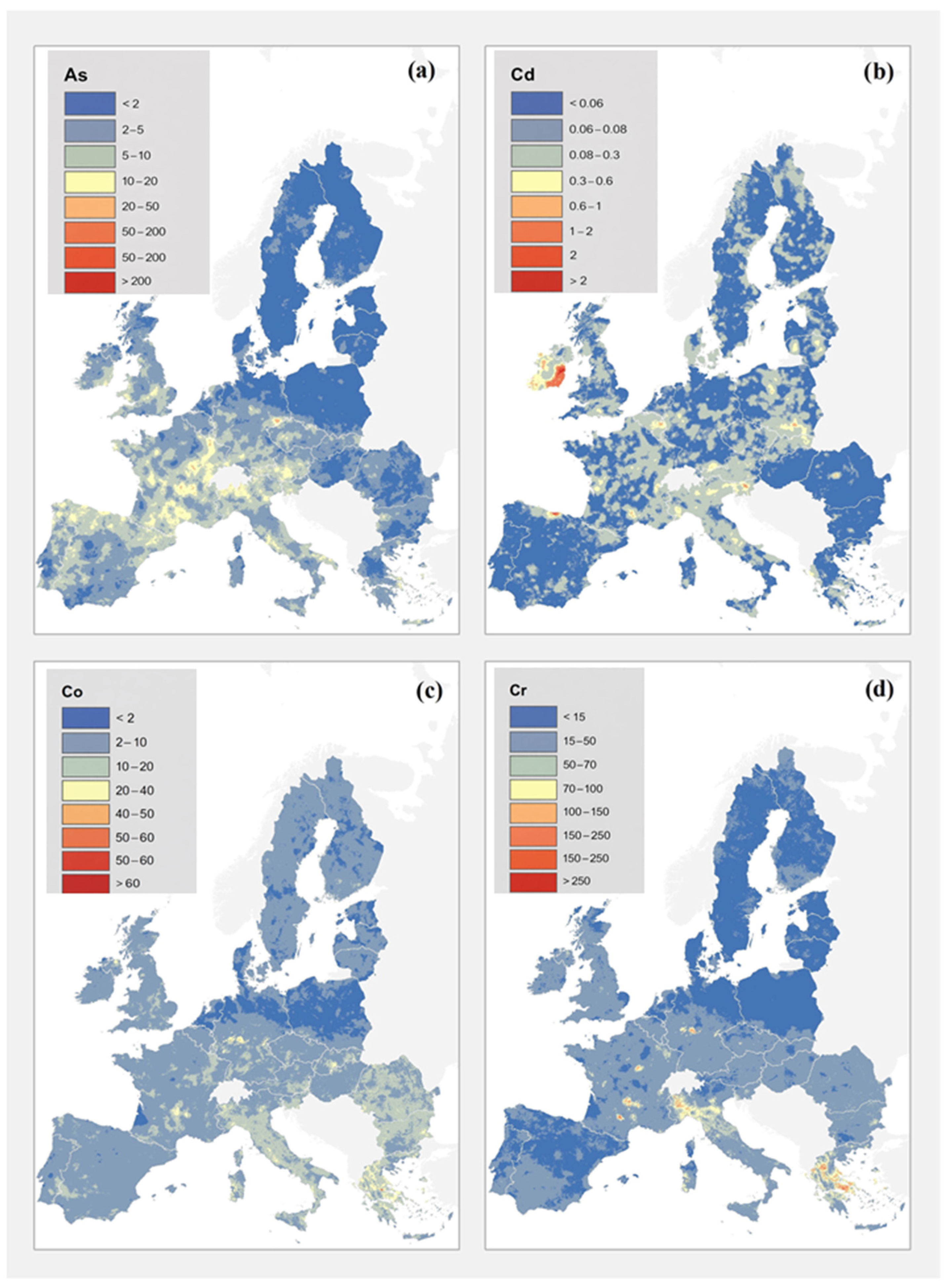 - Tóth, G.; Hermann, T.; Szatmári, G.; Pásztor, L. Maps of Heavy Metals in the Soils of the European Union and Proposed Priority Areas for Detailed Assessment. Sci. Total Environ. 2016, 565, 1054–1062. [Google Scholar] [CrossRef]