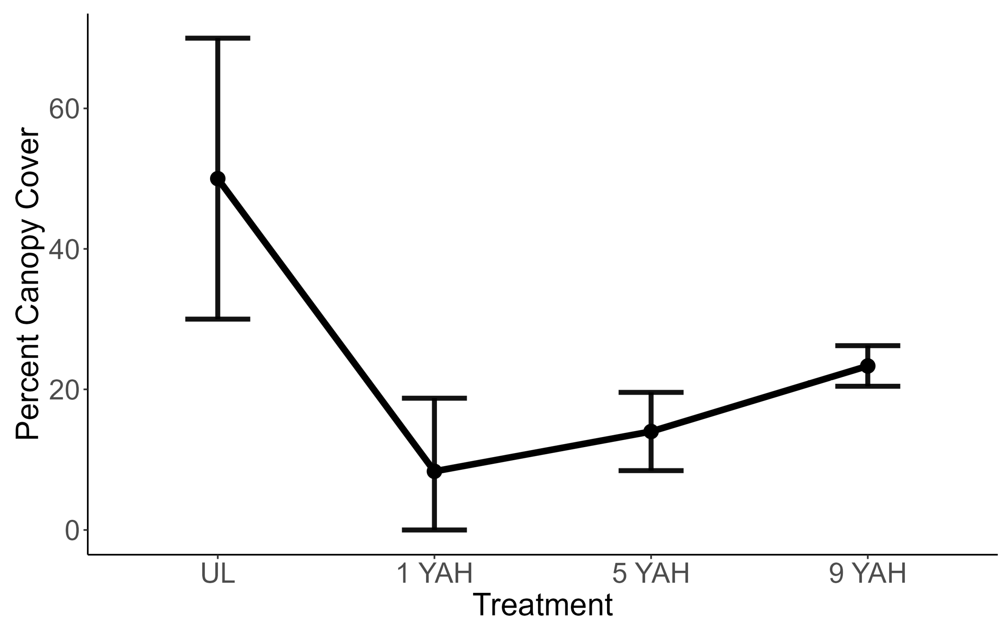 | Canopy cover | 0.37 | 0.08, 0.65 | 0.31 | 0.14, 0.48 | ||||||