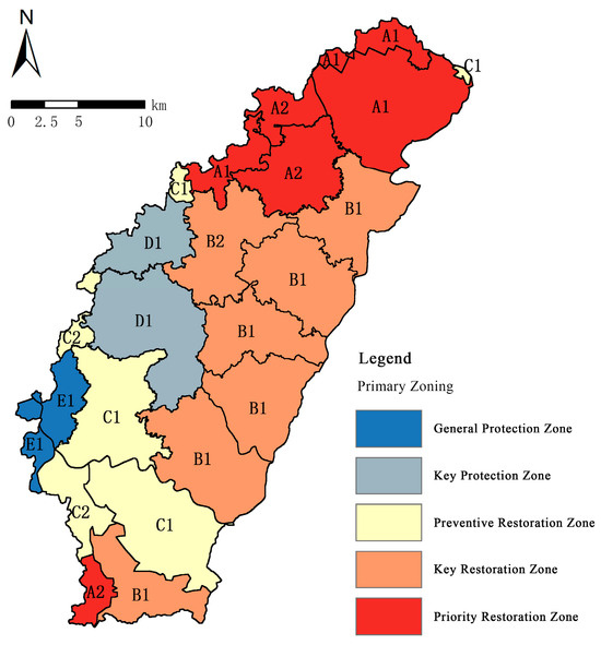 (3) Health Restoration Zoning and Strategies: The basin was delineated into five types of restoration zones, and tailored restoration strategies were proposed for each zone. Priority restoration areas (with poor health) should focus on rebuilding ecological structure and function. Key restoration areas (currently good health but functionally suboptimal) require enhanced connectivity and network optimization. Preventive restoration areas (incipient degradation) need early intervention and monitoring. Key protection areas (critical, improving zones) demand strict conservation measures, while general protection areas (good health, stable zones) should balance protection with sustainable use. Implementing these zone-specific strategies will improve overall ecosystem health and support the long-term sustainability of the Luxi River Basin.