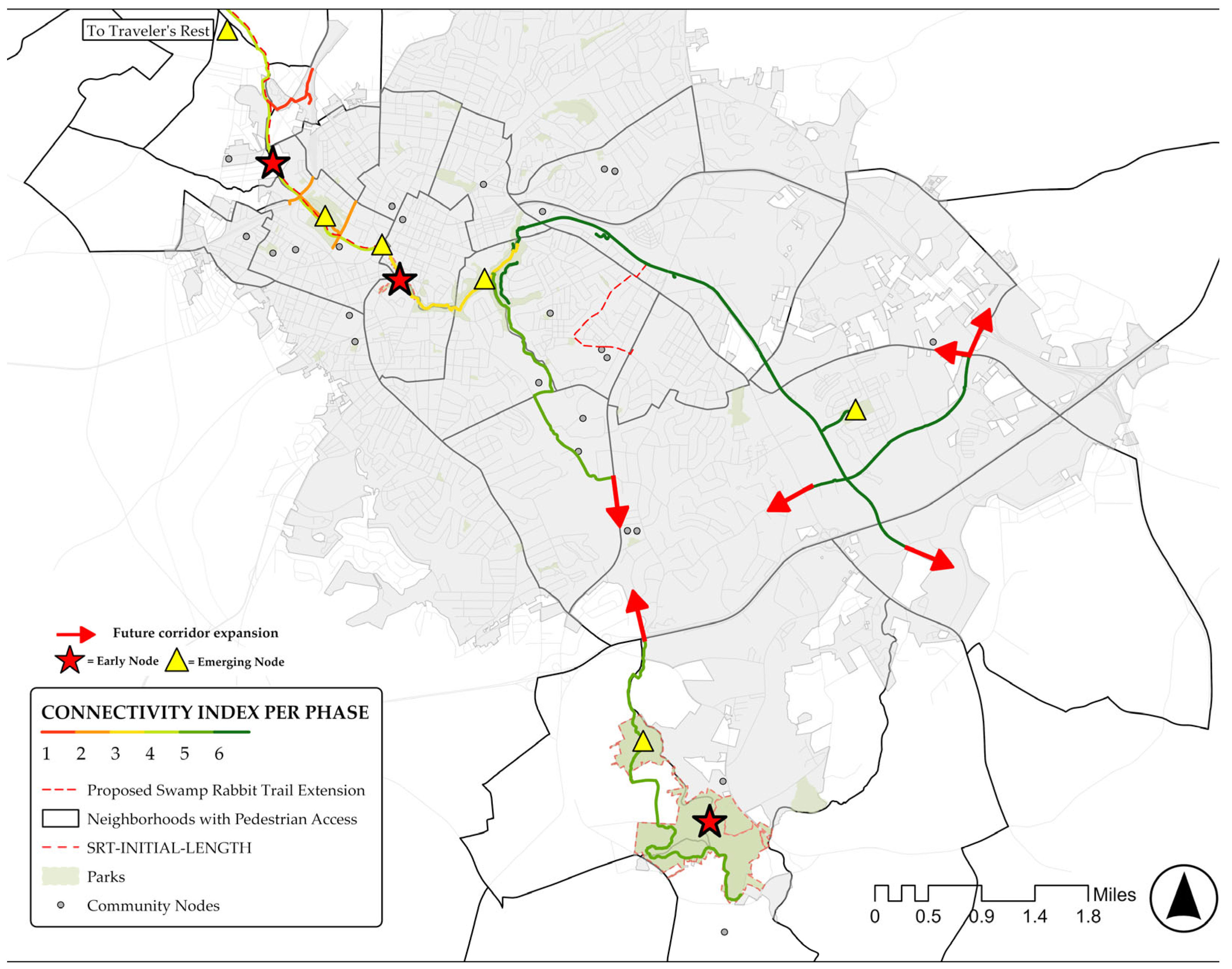 6.4. Expansion of Connectivity and Greenway Networks: Swamp Rabbit Trail