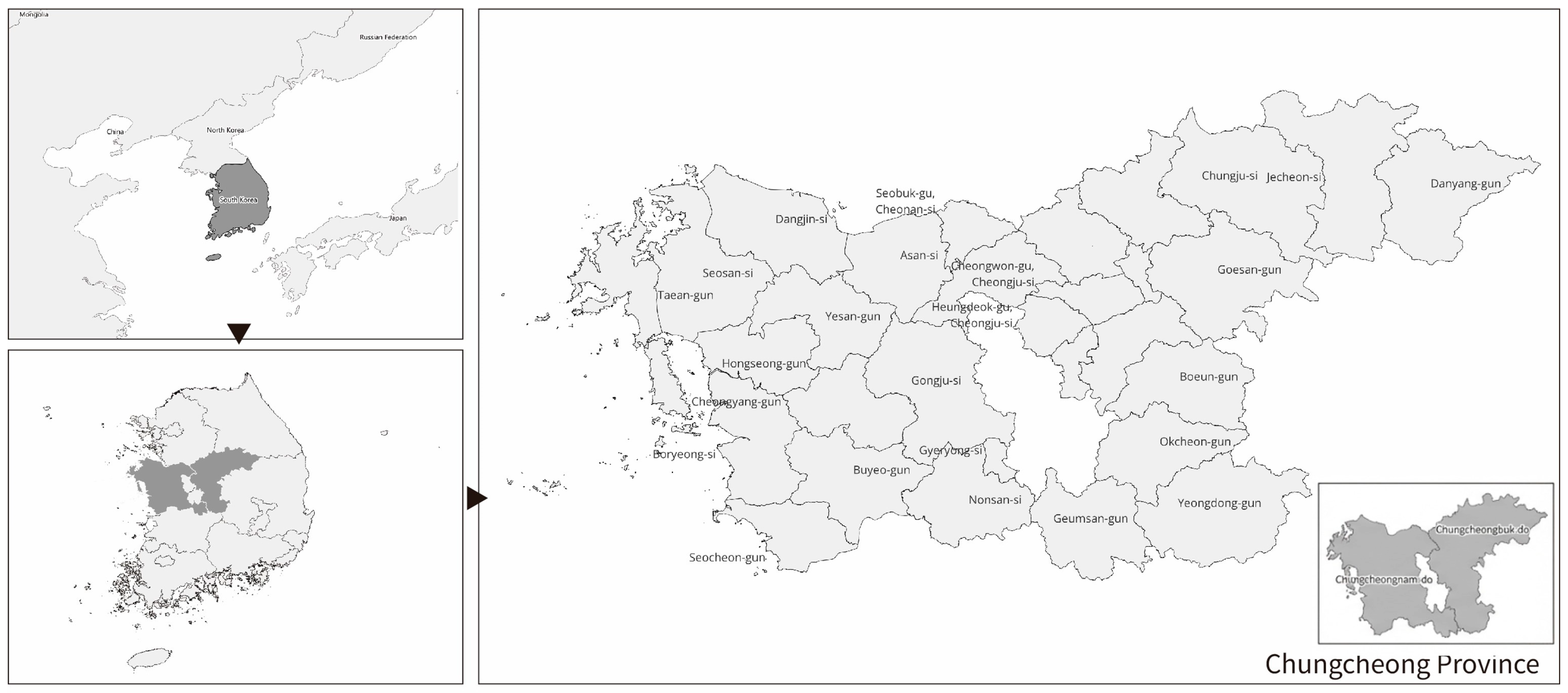 | Study area & unit | Chungcheong region (Chungcheongnam-do & Chungcheongbuk-do), 1 km × 1 km grid |