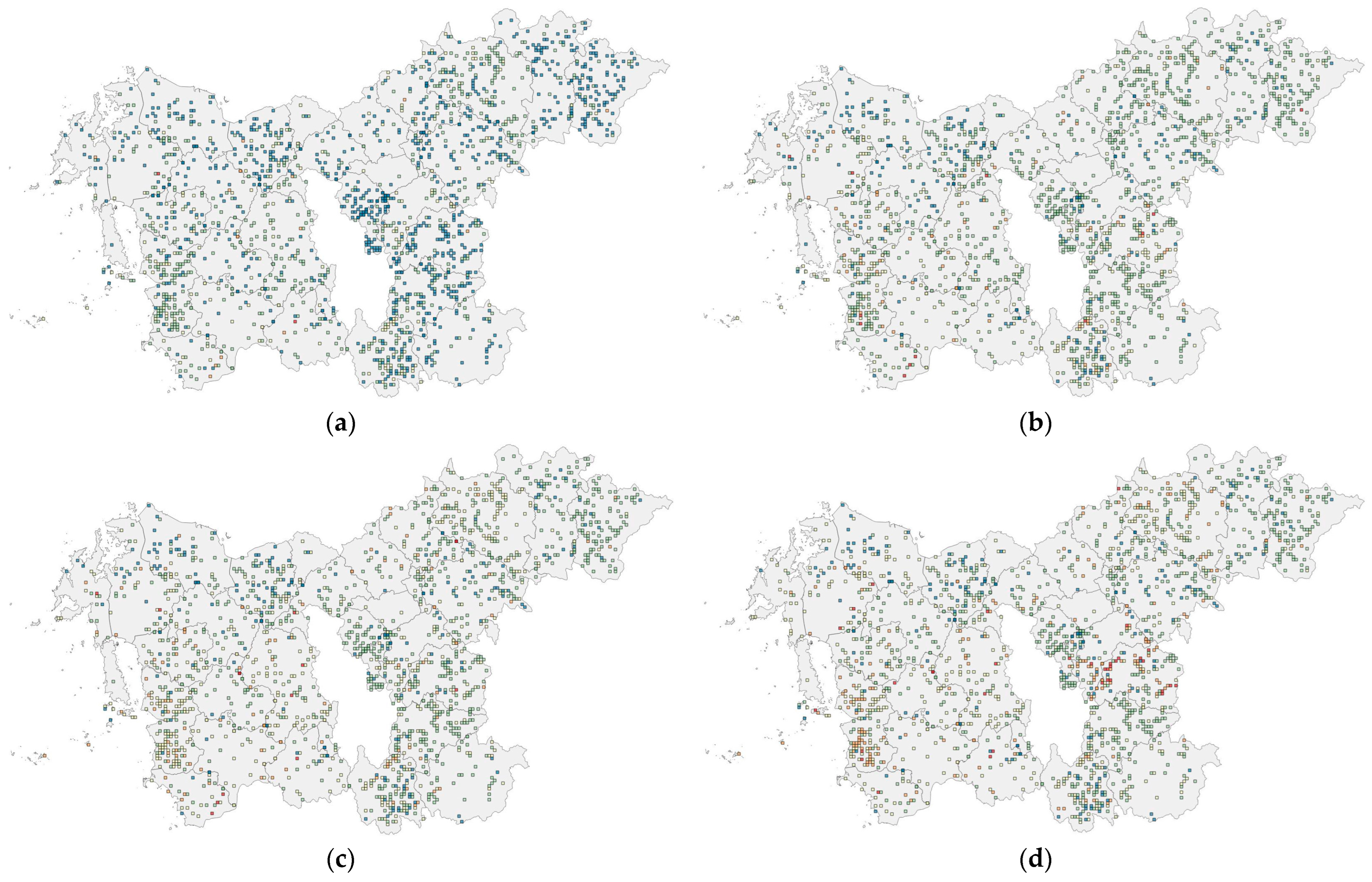 - Statistics Korea. SGIS Grid Boundary Data (Used: 1 km). Available online: https://sgis.mods.go.kr/view/index (accessed on 8 February 2026).
