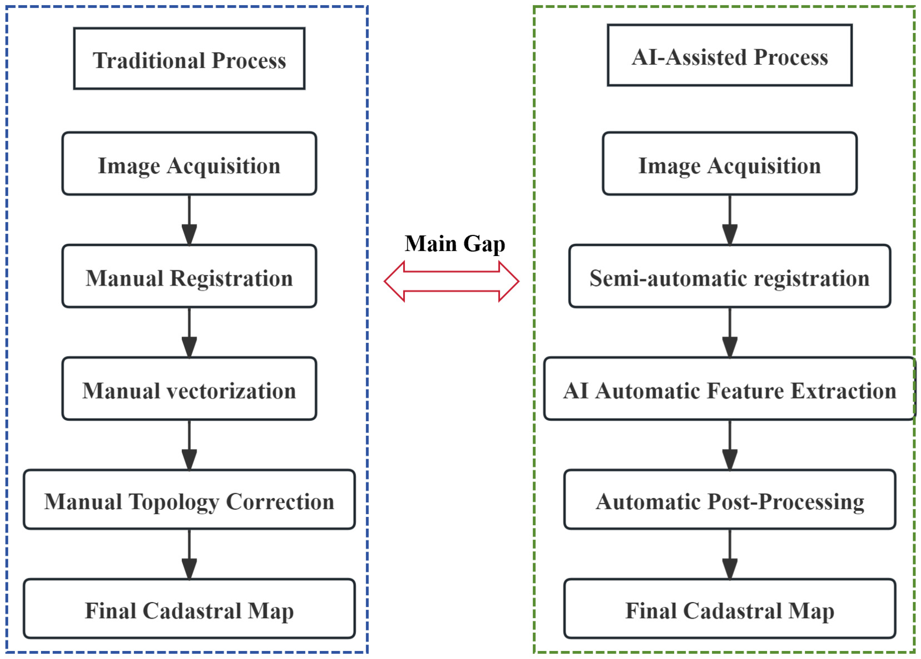 | Deep Learning (DL) | Data-driven feature learning | Complex urban cadastral surveys, multi-source data fusion, etc. |