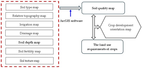 Secondary data, survey data, and analytical results were compiled and statistically processed using Microsoft Excel. Meanwhile, spatial data used for developing single-factor maps, the soil quality map, and the crop development orientation map were processed using ArcGIS software.