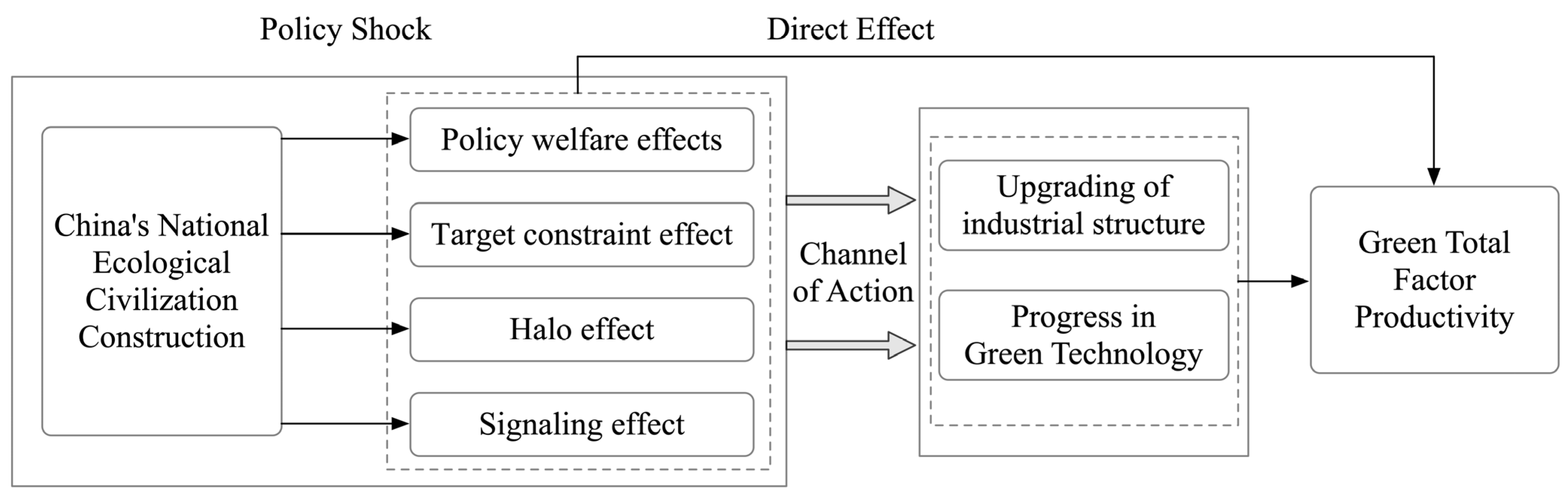 This paper constructs a GTFP index to comprehensively assess the impact and effectiveness of ecological civilization construction, accounting for the coordinated development of regional resources, environment, and economy. To measure GTFP, the study adopts a super-efficiency Slack-Based Measure (SBM) model that incorporates both energy consumption and environmental pollution [