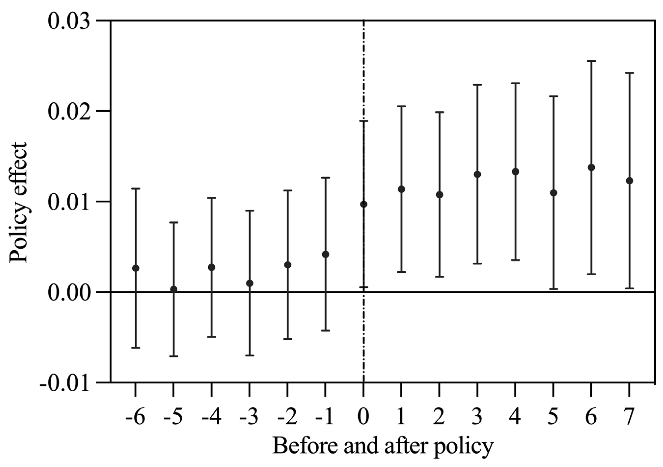 Opinions on Establishing Unified and Standardized National Ecological Civilization Pilot Zones stipulated that no department could launch new ecological civilization pilot projects without prior approval from the Central Committee of the Communist Party of China and the State Council. Additionally, all self-initiated pilot projects were required to conclude by 2020. This policy shift led to a sharp decline in the number of new pilot cities between 2016 and 2017, with relatively few meeting the screening criteria for inclusion. While no new pilot cities were established in 2018 and 2019, the focus shifted toward refining and enhancing the organization, implementation, and policy requirements of the existing pilot projects, making 2019 a natural endpoint for the observation period. This also corresponds to the data scope adopted in this study, as the comparability of post-2019 data was further reduced by the exogenous shocks of the COVID-19 pandemic.