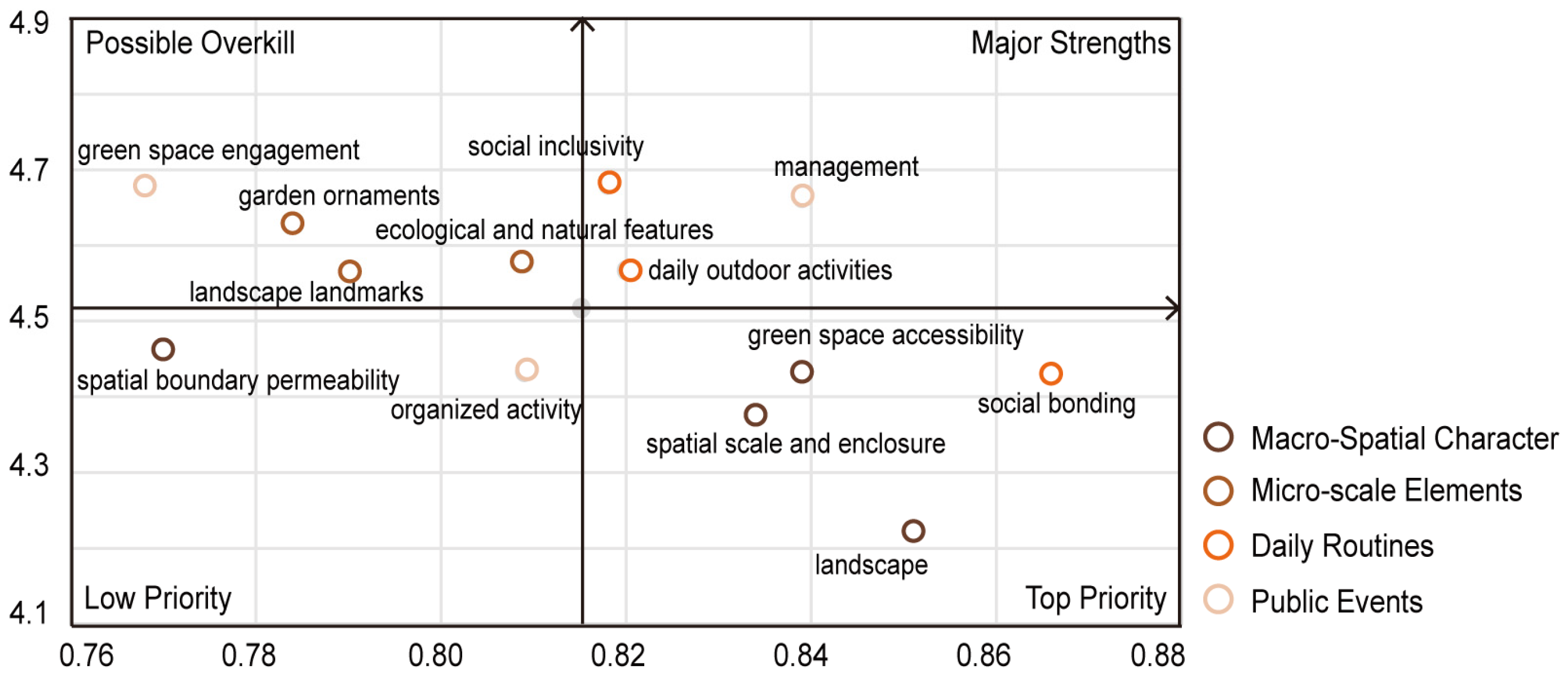 | Subjective composition dimension from user reviews | place dependence | functional-spatial fit | Assess the degree to which green space layout meets diverse needs for evening strolls and seasonal recreation; emphasize the functional irreplaceability. |
