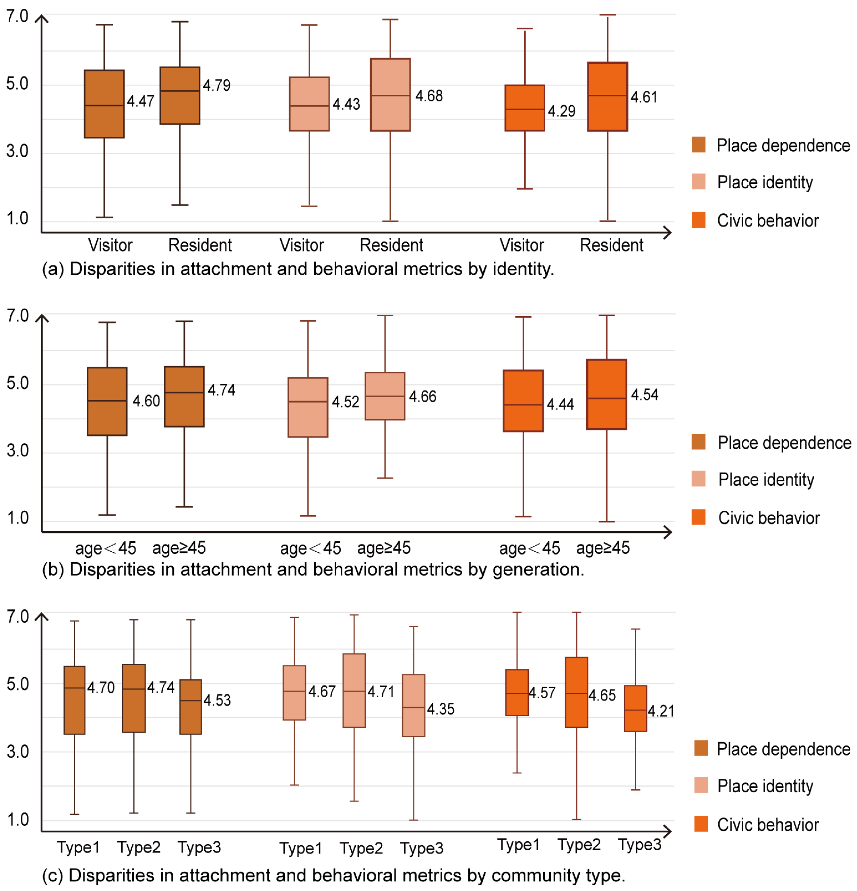 | place identity | identity | resident | 4.68 ± 1.33 | 5.922 | 0.015 * |