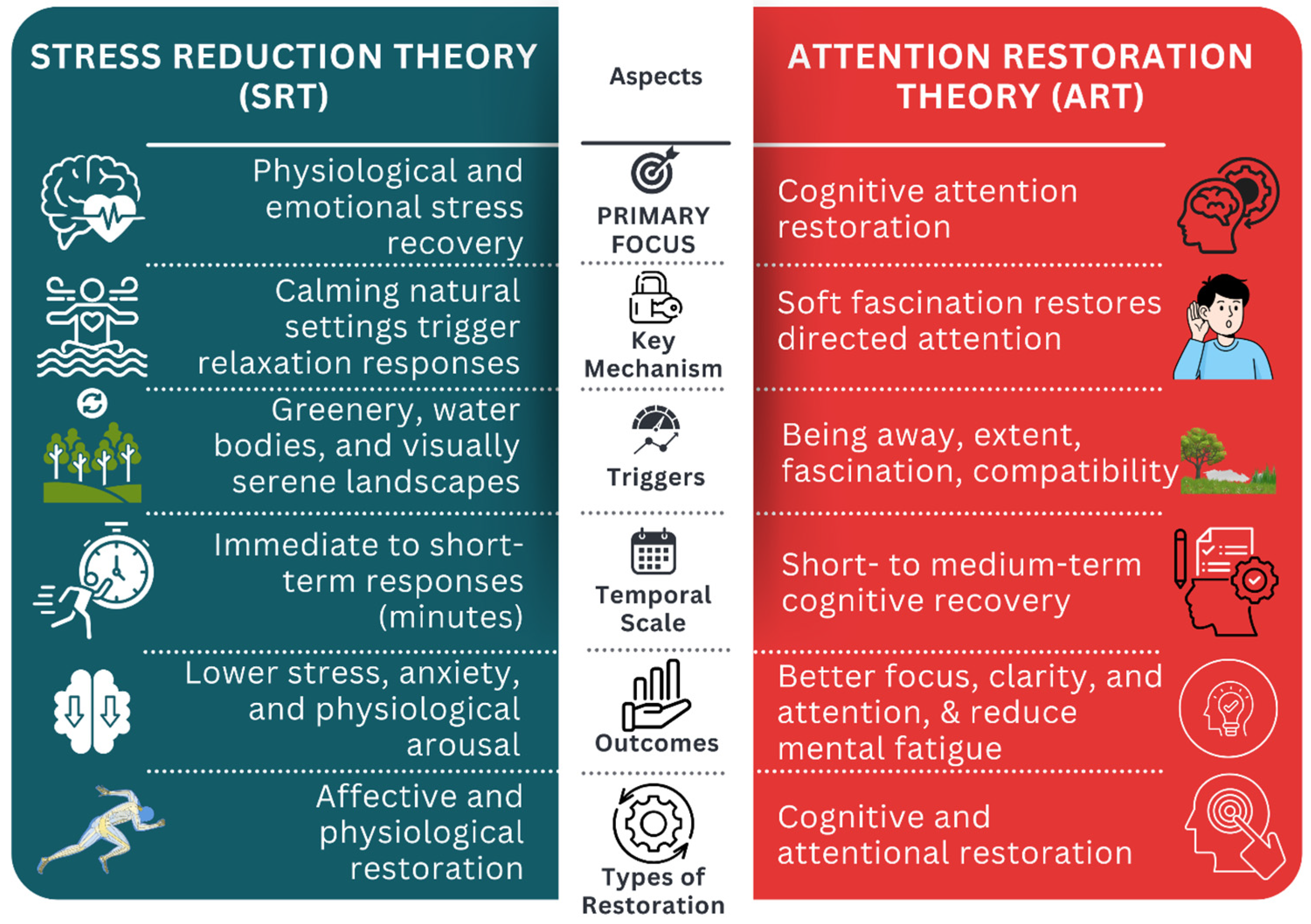 9], while ART highlights cognitive respite enabled by effortless attention and “being away” experiences [