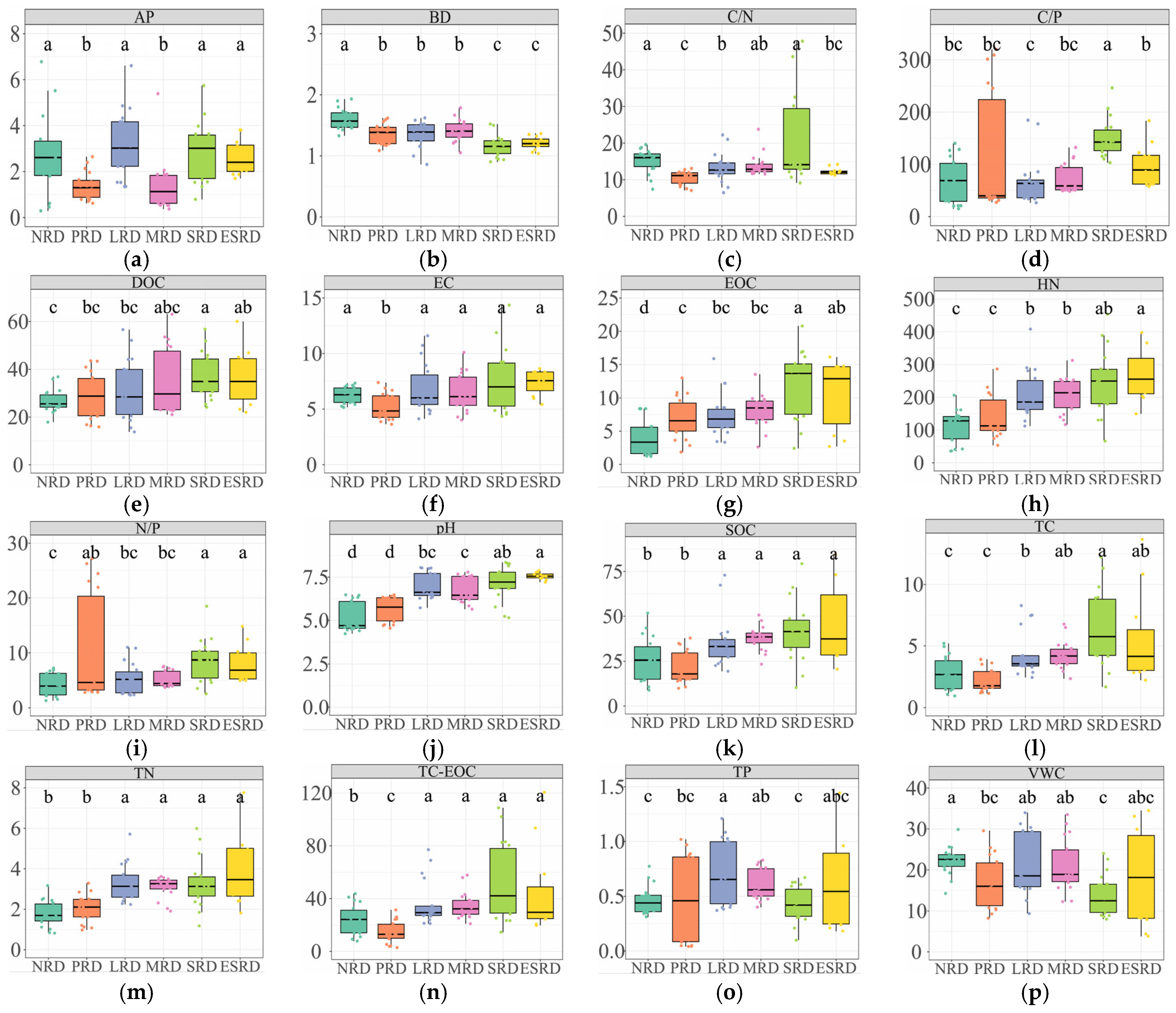 - Gao, L.; Wang, W.; Liao, X.; Tan, X.; Yue, J.; Zhang, W.; Wu, J.; Willison, J.; Tian, Q.; Liu, Y. Soil nutrients, enzyme activities, and bacterial communities in varied plant communities in karst rocky desertification regions in Wushan County, Southwest China. Front. Microbiol. 2023, 14, 1180562. [Google Scholar] [CrossRef]