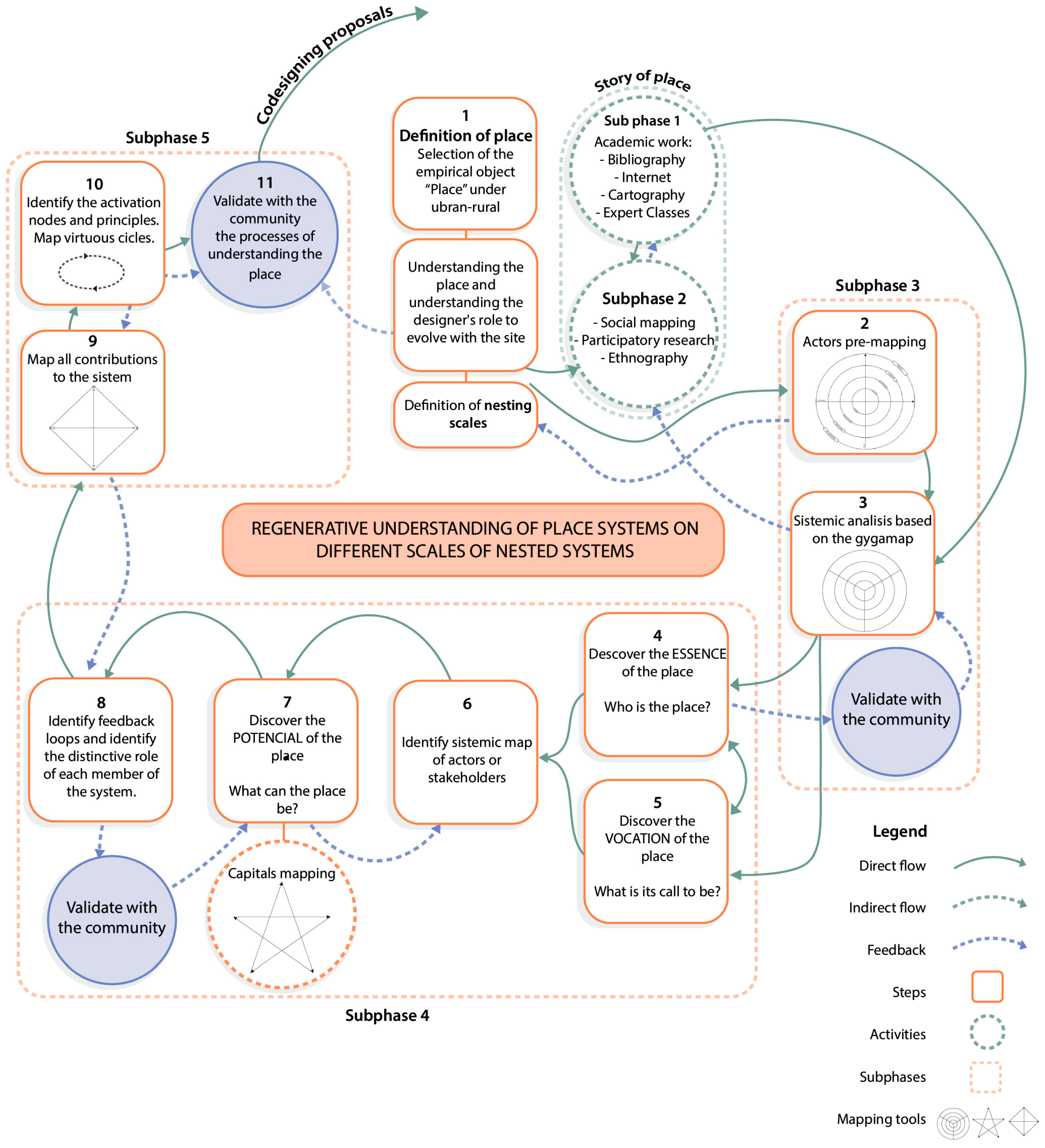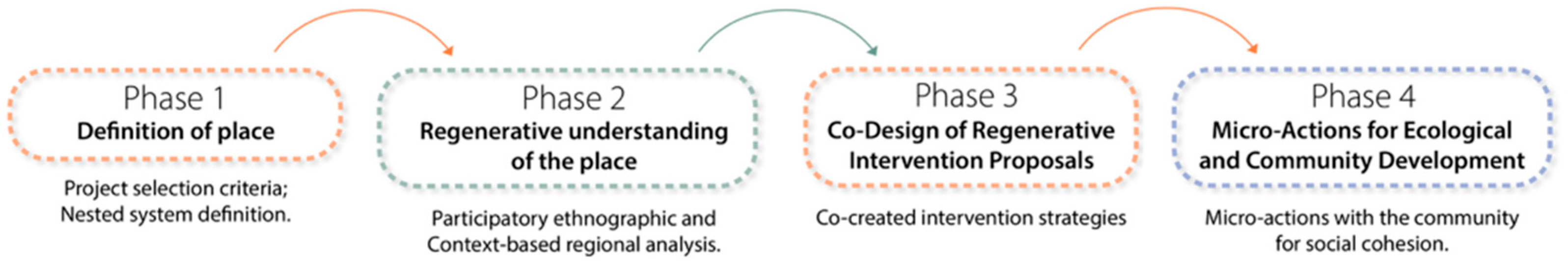 - Cobreros, C.; Rodríguez, N. Regenerative Understanding of Place for Urban–Rural Contexts in Mexico. Methodological Proposal. In Intersections: Interdisciplinary Research on Architecture, Design, City and Territory; Springer Nature: Cham, Switzerland, 2025; pp. 73–97. [Google Scholar]