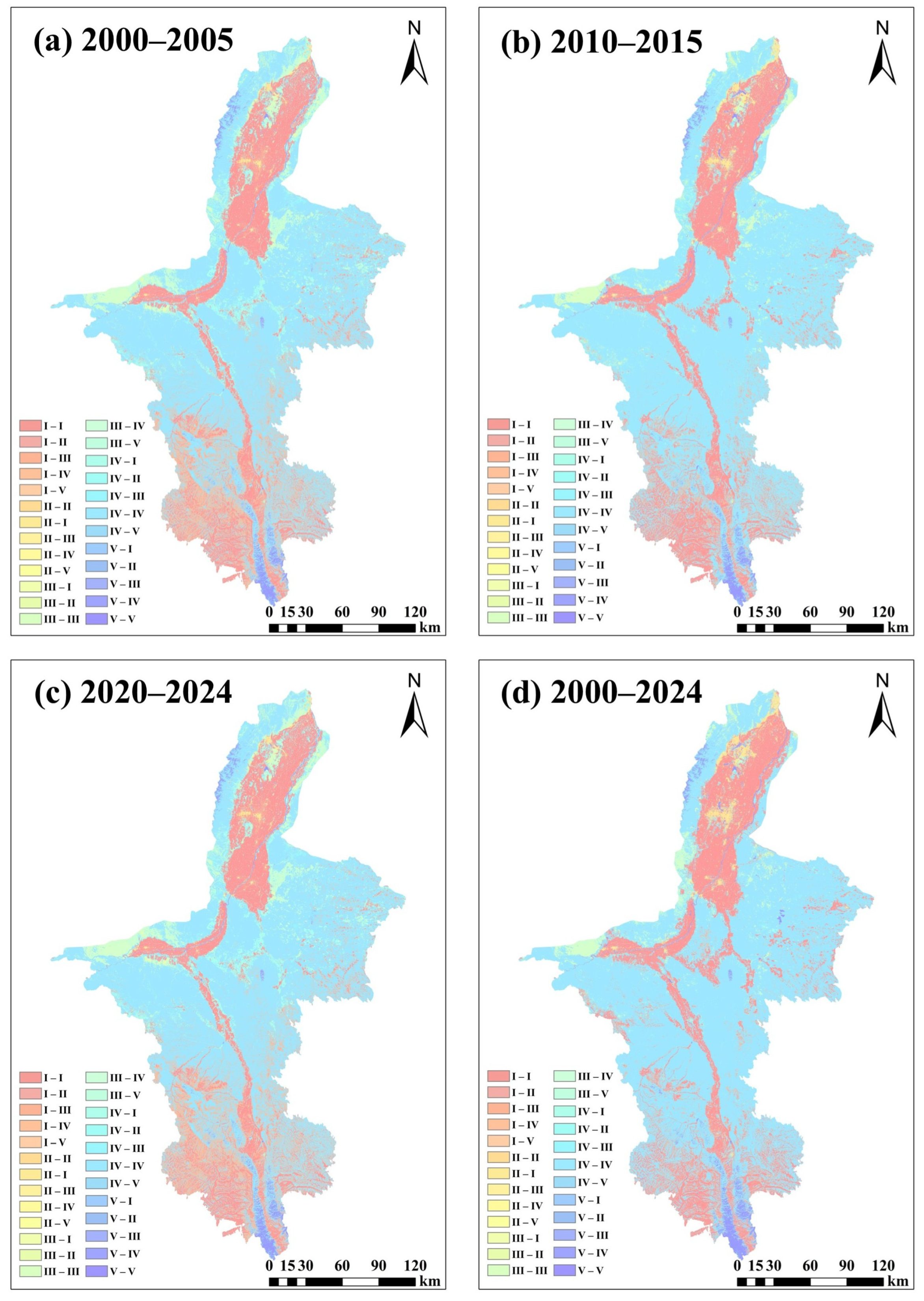 | Land use and land cover | China land cover dataset [20] | 30 m | 2000, 2005, 2010, 2015, 2020, 2024 | https://zenodo.org/records/15853565 (accessed on 4 September 2025) |