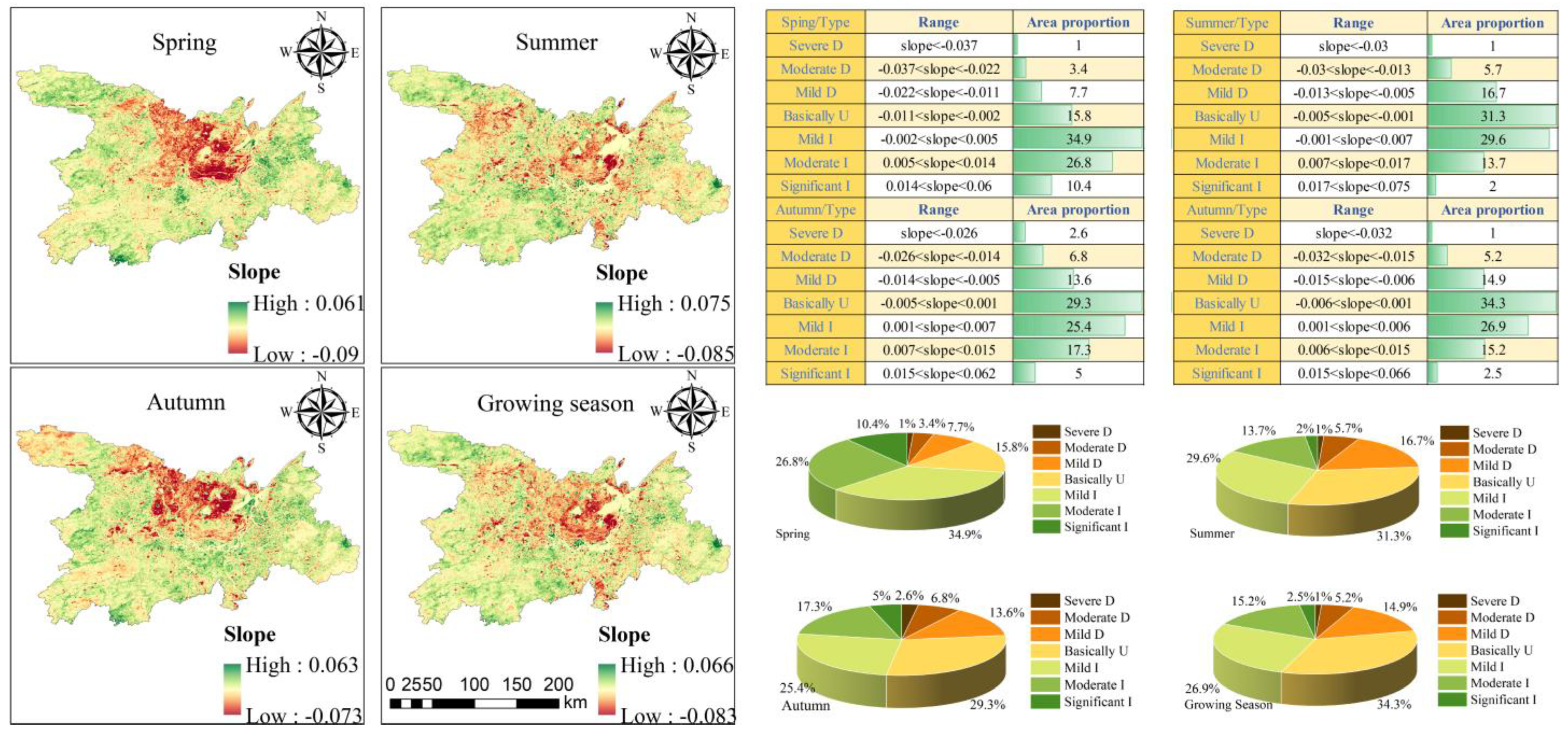 3.2.2. Analysis of Seasonal FVC Evolution Trends