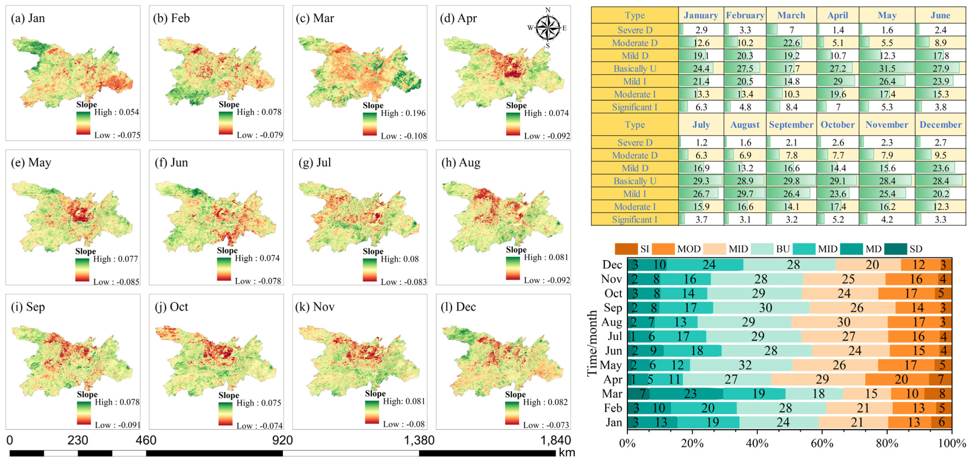 3.2.3. Analysis of Monthly Vegetation FVC Evolution Trend