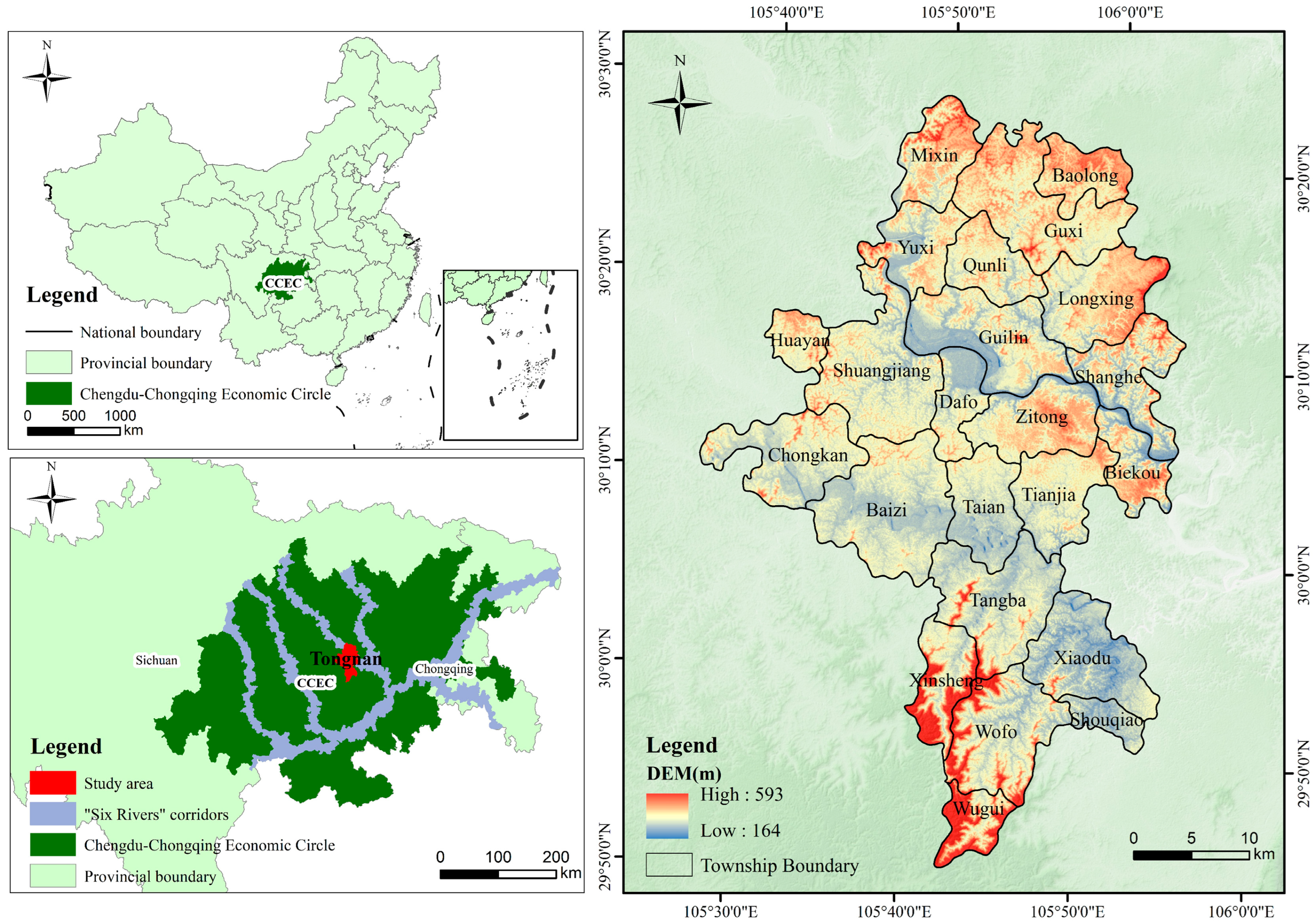 | Night light | 2020 | 30 m | National Earth System Science Data Center, National Science & Technology Infrastructure of China | https://www.geodata.cn/main/face_science_detail?guid=8213124601985&docId= (accessed on 15 October 2025) |