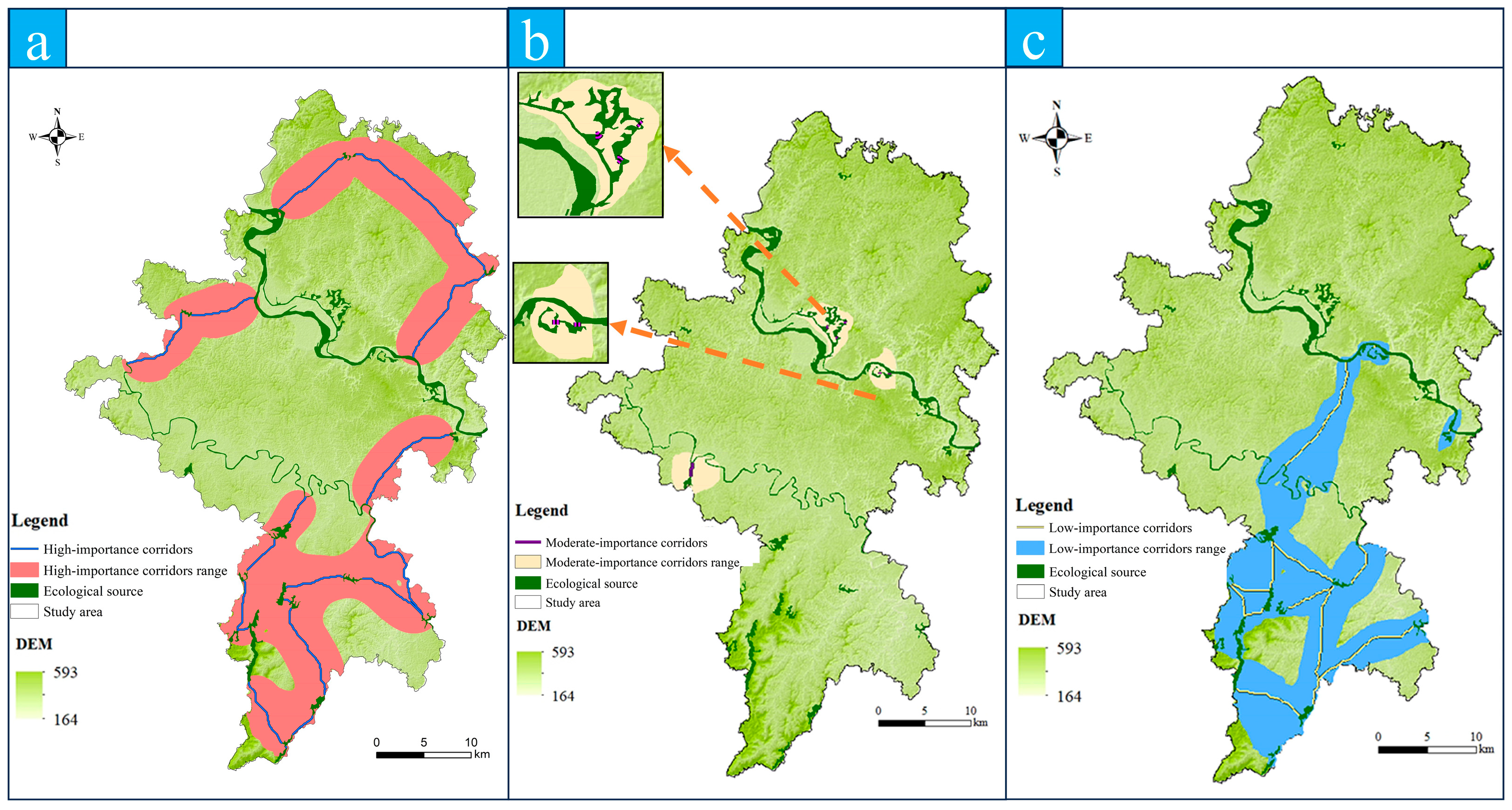3.1.4. Range Delineation and Classification of Ecological Corridors