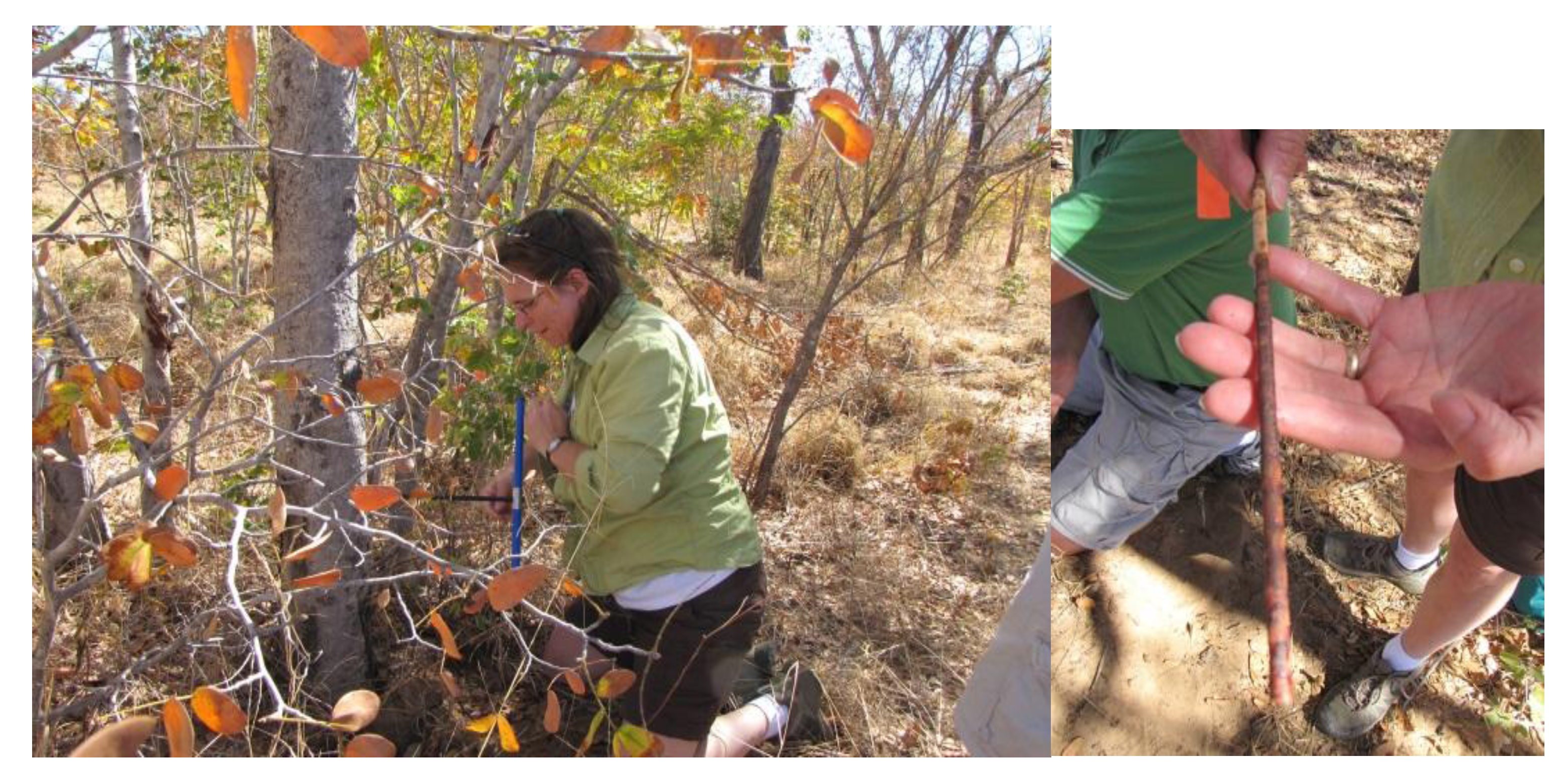 Spatio-temporal trends of vegetation change can be measured at landscape-scales and over relatively extended temporal scales (past 30 years) using time series of remotely sensed data. Protracted desiccation and increased frequency of dry years may irreversibly alter the state of the savanna landscape. These associations have considerable effects on phenology, land use choices, and ultimately, socio-ecological functioning. An understanding of the long-term response of vegetation to climate change requires repeated spatial and temporal information on the distribution of vegetation. Since long term and instrument-acquired climate records in this region are spatially and temporally limited, the importance of proxy data for modeling current vegetation/climate dynamics and future potential vegetation shifts or states is magnified [28]. Pollen data from sediment cores [7,9] provide long-term reference data, and isolated midden pollen allow for “snap-shots” of landscape level vegetation patterns [11], but tree ring data have the potential to provide annual resolution and species-specific responses to climate [28]. In the last decade work on tropical dendrochronology has shown that many species do have the potential for long chronology development, quantifiable tree ages, and the development of growth models [29]. In southern Africa the strong seasonality of precipitation and deciduous habit of many species support the development of visible and measurable growth rings [28,30,31,32,33,34].