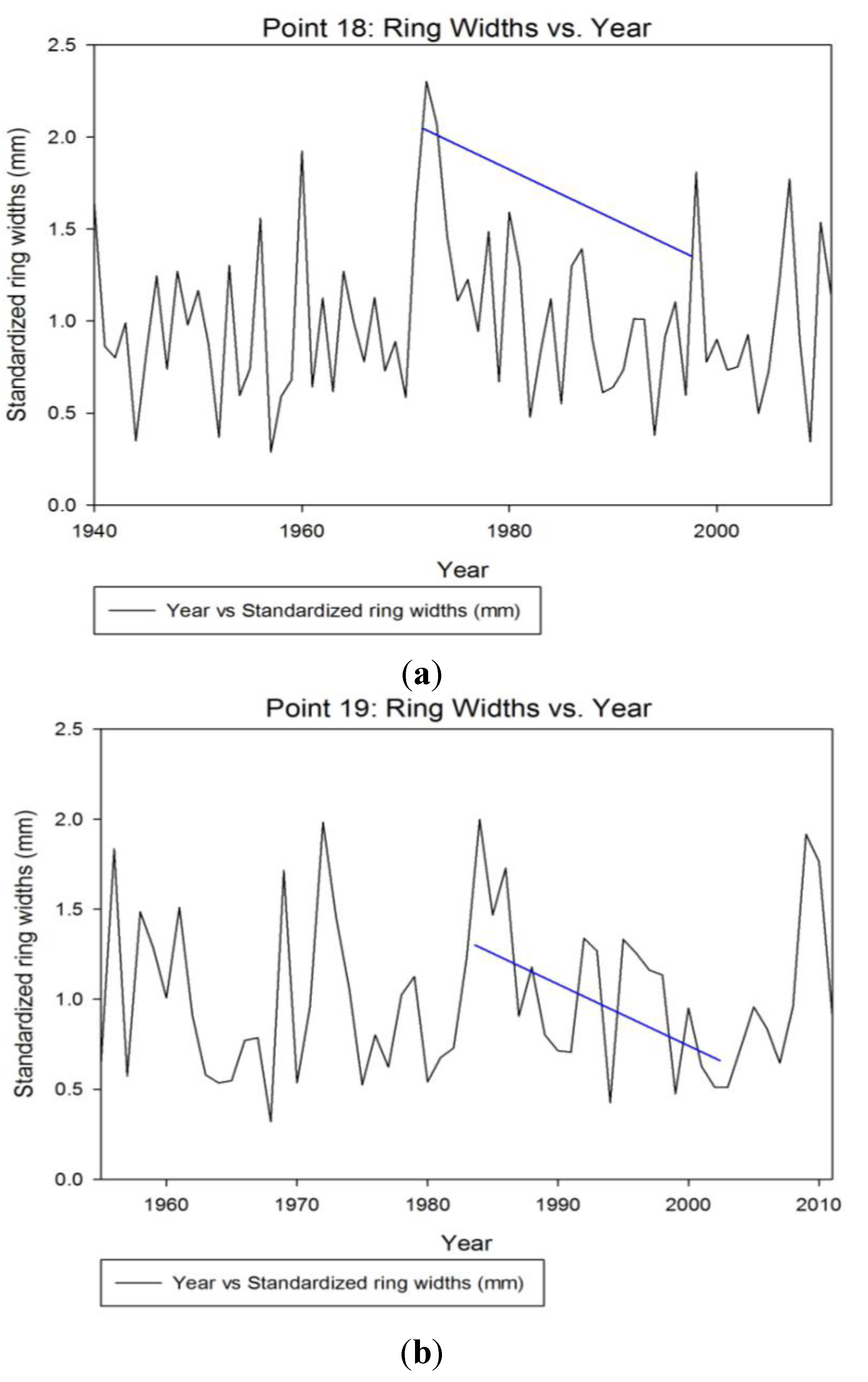 3.2.2. Tree Ring Analysis from Sampled Cores