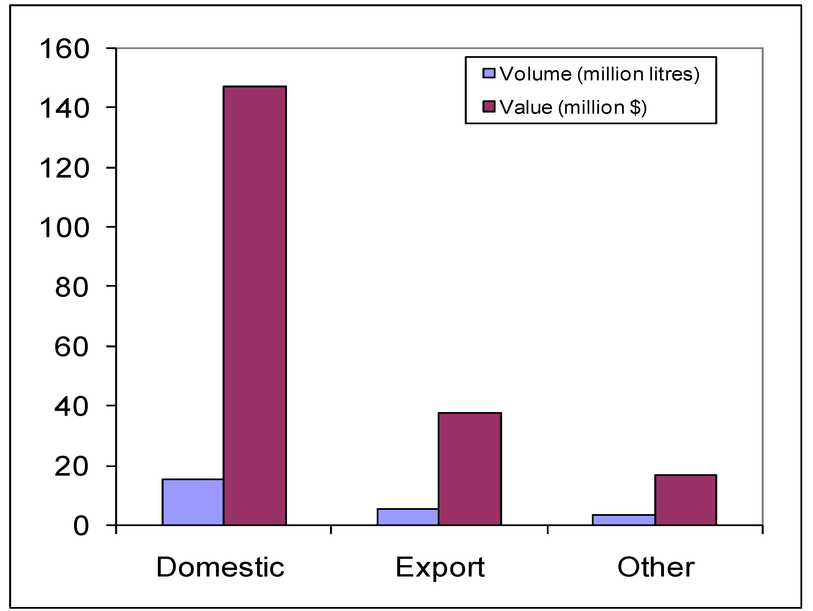 One of the key reasons for the rising incomes and rising employment in the tourism industry in the study region is the rapid rise to prominence of the Australian wine industry and the associated tourism activities. Wine tourism is defined as: “visitation to wineries and wine regions to experience the unique qualities of contemporary Australian lifestyle associated with the enjoyment of wine at its source including wine and food, landscape and cultural activities” [40]. Wine tourism has a separate and recognizable identity in the Australian economy. An overview of the wine and grape business in Australia indicates that the total production of grapes in 2005–2006 was a little above 2 million tonnes, of which more than 90% was used for wine making [41]. Of the total grape crushed for wine in 2006, NSW/Australian Capital Territory accounted for 34.6% after South Australia, which accounted for 47.3%. Though the total grape area in the lower Hunter is only just above one-tenth of the state total in 2008 [42], it is significant in terms of tourism industry. About 25 million liters of grape wine are produced in this region for which more than 40% of the grapes are imported from other regions [42], due to insufficient supply from the internal production. As wine business in the region is tourism based, the region has a larger share of the produced wine domestically sold (Figure 12). This is unlike the picture at a national scale in which larger share of the wine produced is exported.