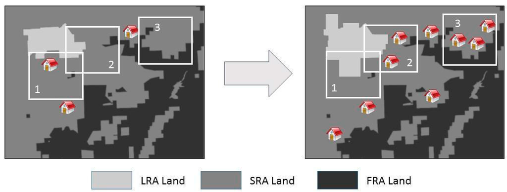 Likewise, the state of California recently passed a law requiring local authorities to include wildfire safely as part of general plans [32]. While this law has only recently passed, the goal is to force communities to think about how wildfire may impact future land use changes. At a smaller scale many municipalities now require that new developments have plenty of egress and regress for firefighting equipment and in addition many localities now enforce strict vegetation guidelines as another way to reduce fire risk [33]. All of these land use planning measures can impact the land-use change process by limiting areas where residential development can take place, the arrangement this development takes (for instance development densities), as well as vegetation near these developments.