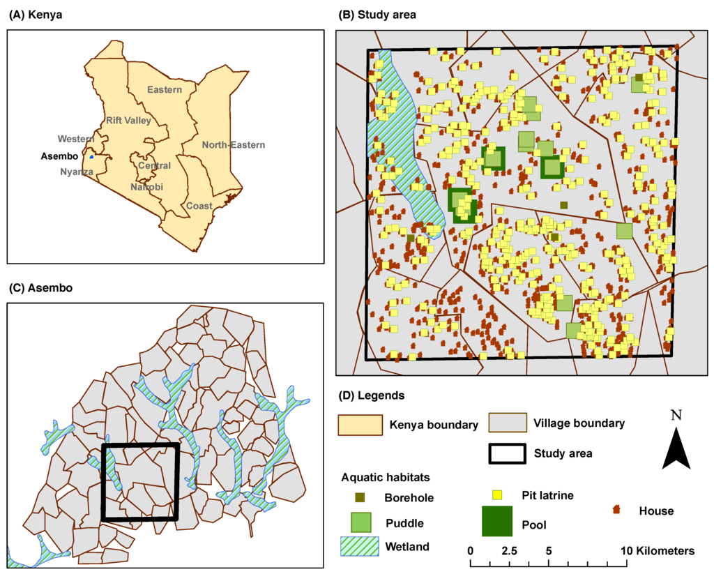 Anopheles mosquitoes need to access human blood meals (in houses) and aquatic habitats (various water bodies) to complete their life cycle. Thus, the houses and aquatic habitats can be termed as important