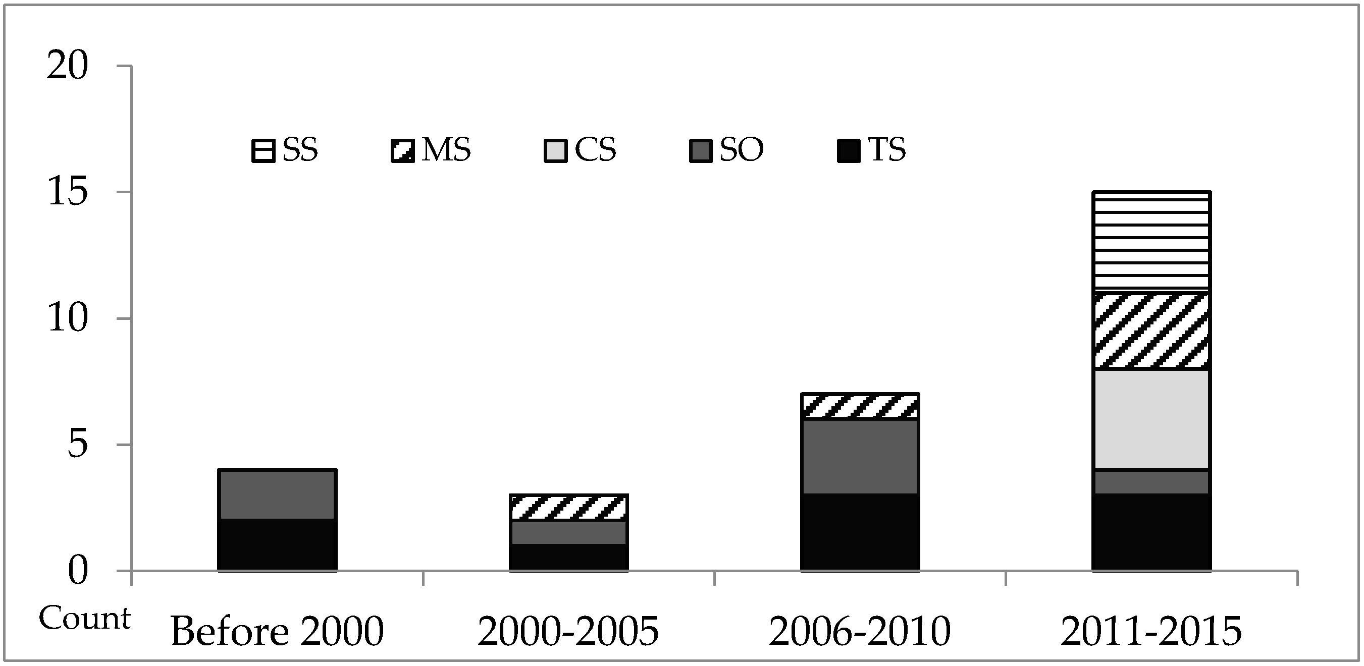 Trend of systems linked with land use systems via feedbacks in models. TS: transport system; SO: soil system; MS: market system; CS: climate system; and SS: social system.