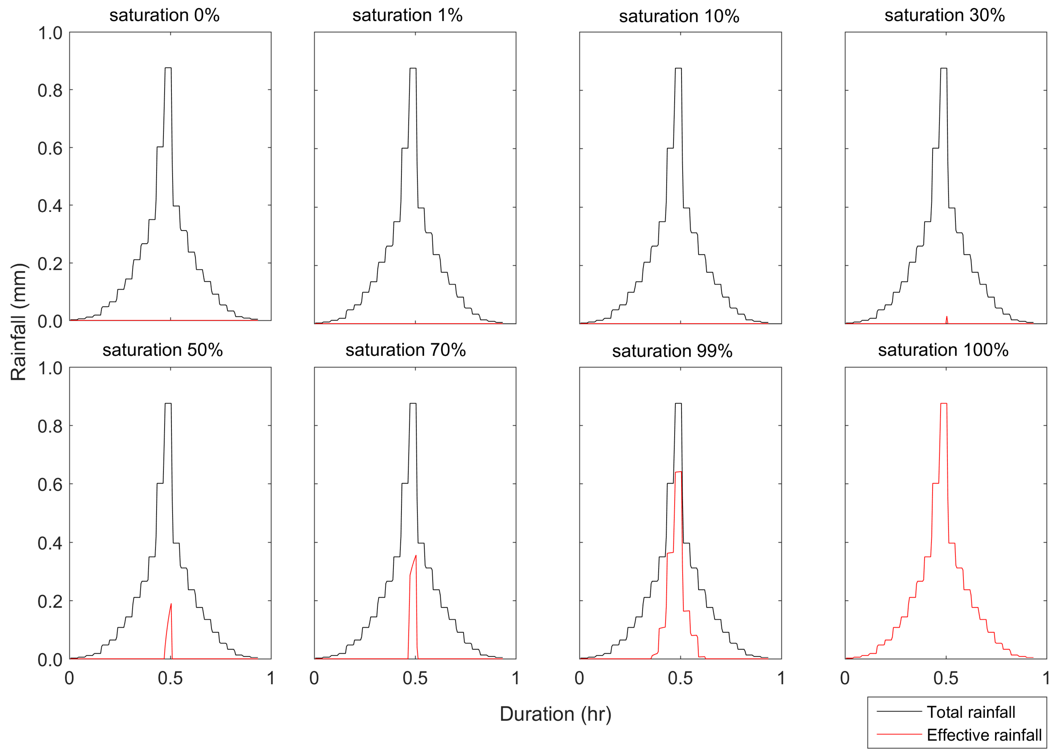 | Effective hydraulic conductivity | Ks | 43.79 mm·h−1 |