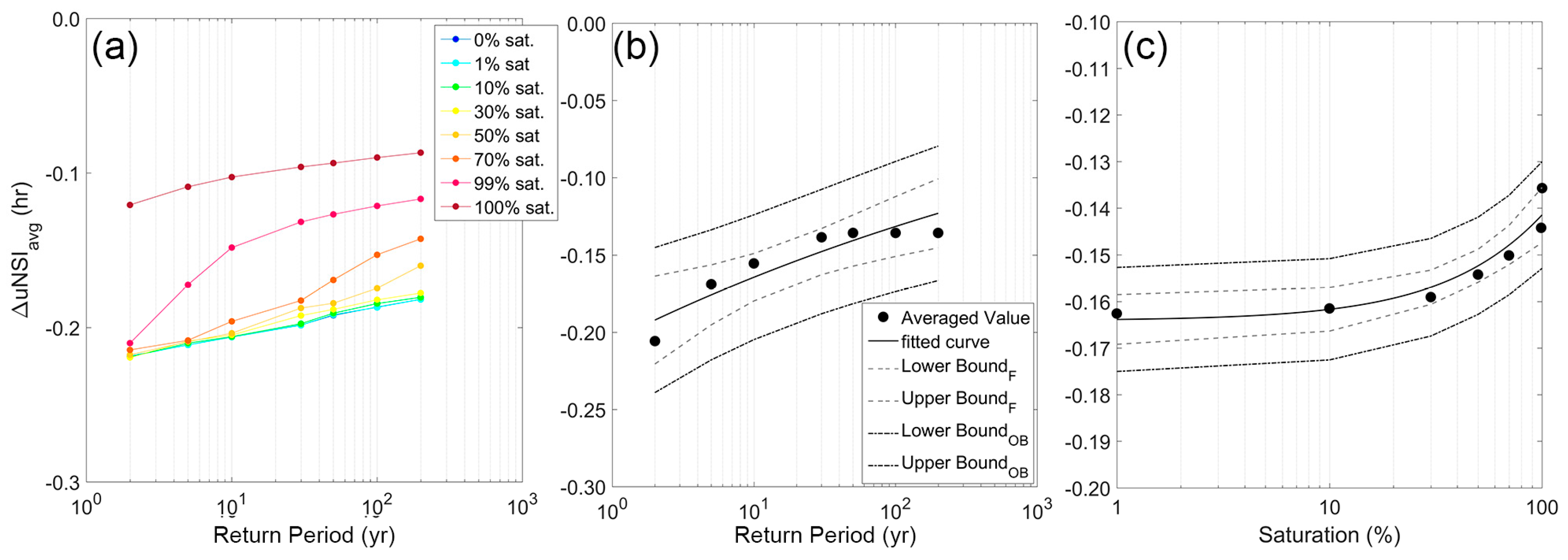 | ΔuNSI = f (Return period) | ΔuNSI = f (Saturation condition) | |