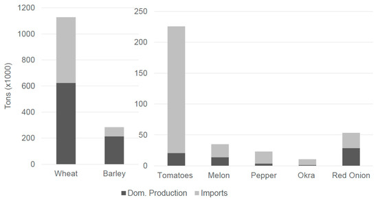 Kurdistan Regional Government (KRG) domestic production and imports for 2010. Source: Kurdistan Region Statistics Office (KRSO) [39,40].
