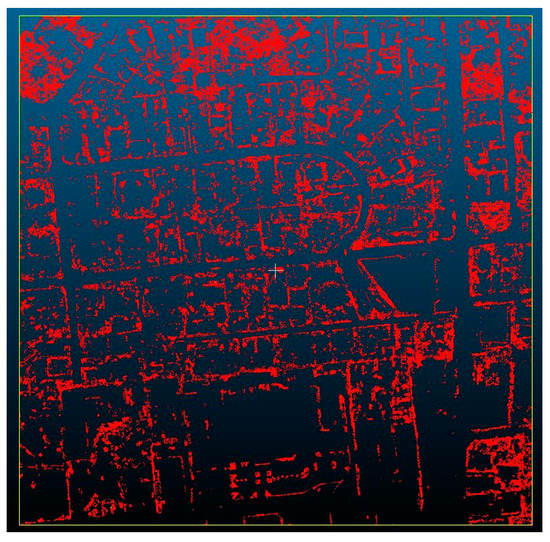 A cadastral boundary morphology study indicates that roads very likely coincide with cadastral boundaries [11]. Normally, roads lie at ground level and they cannot be separated by height differentiation. Inspired by the work of Clode, Kootsookos, and Rottensteiner [40], road material is usually uniform along a road section, in spite of the noisy value of intensity returned by scanning units. Therefore, points were then selected when their last pulse intensity values fell in the acceptable range for this type of road material. By searching for a particular intensity range (defined by Equation (1)), it is possible to extract most LiDAR points that were on roads, even though there were also some other on-road detections that were also produced. Equation (2) illustrates how the LiDAR points were filtered based on their intensity, in order to create a new subset of points [40].