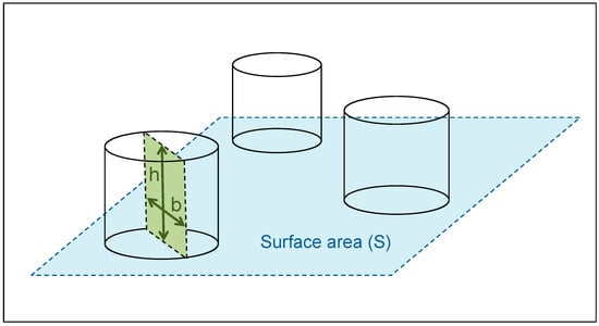 Illustration of the parameters used to calculate roughness density () in roughness studies: is element height, is element base/width, is the number of elements, and is the surface area over which the calculation is made.