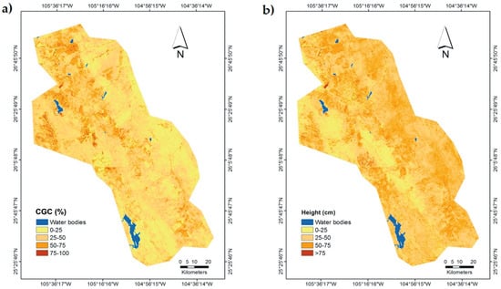 The maps generated for CGC and grass height showed moderately high accuracies that can be representative and used as a reference to help assess current and future land use development, grasslands capacities, animal production potentials and the status of grassland avian habitats [,,,].
